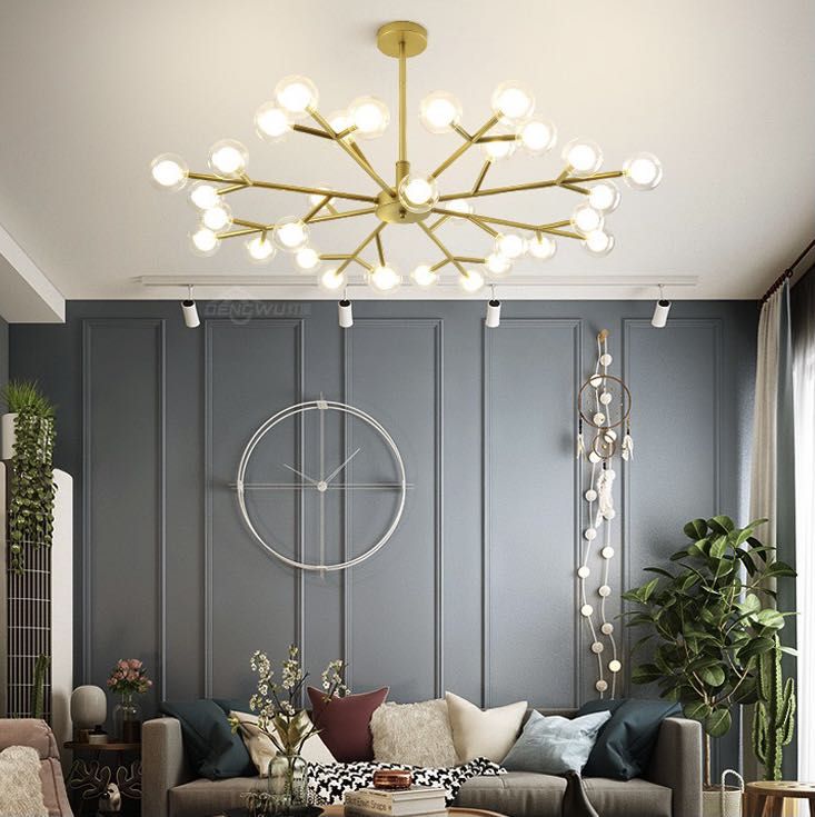 即使是简单的照明,也能让家充满艺术感。这款雪花造型灯具充满后现代的轻奢感,整体看,就像大片雪花悬挂房顶,雪花下边有32头小灯泡,犹如雪融化后的小水滴,不过,却没有给人夸张和做作,让你的家充满品位。