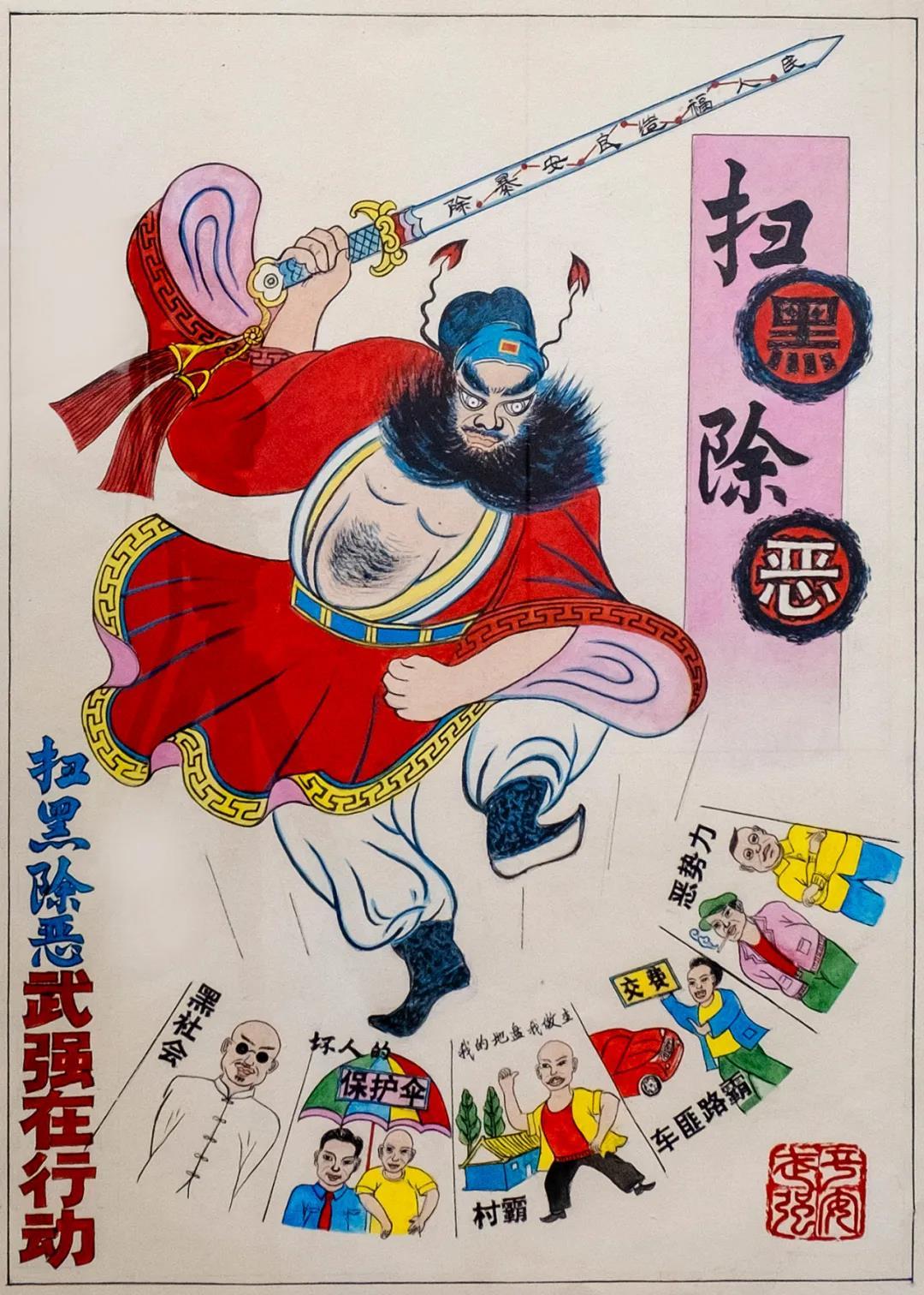 年画作品《扫黑除恶》。刘国胜 作