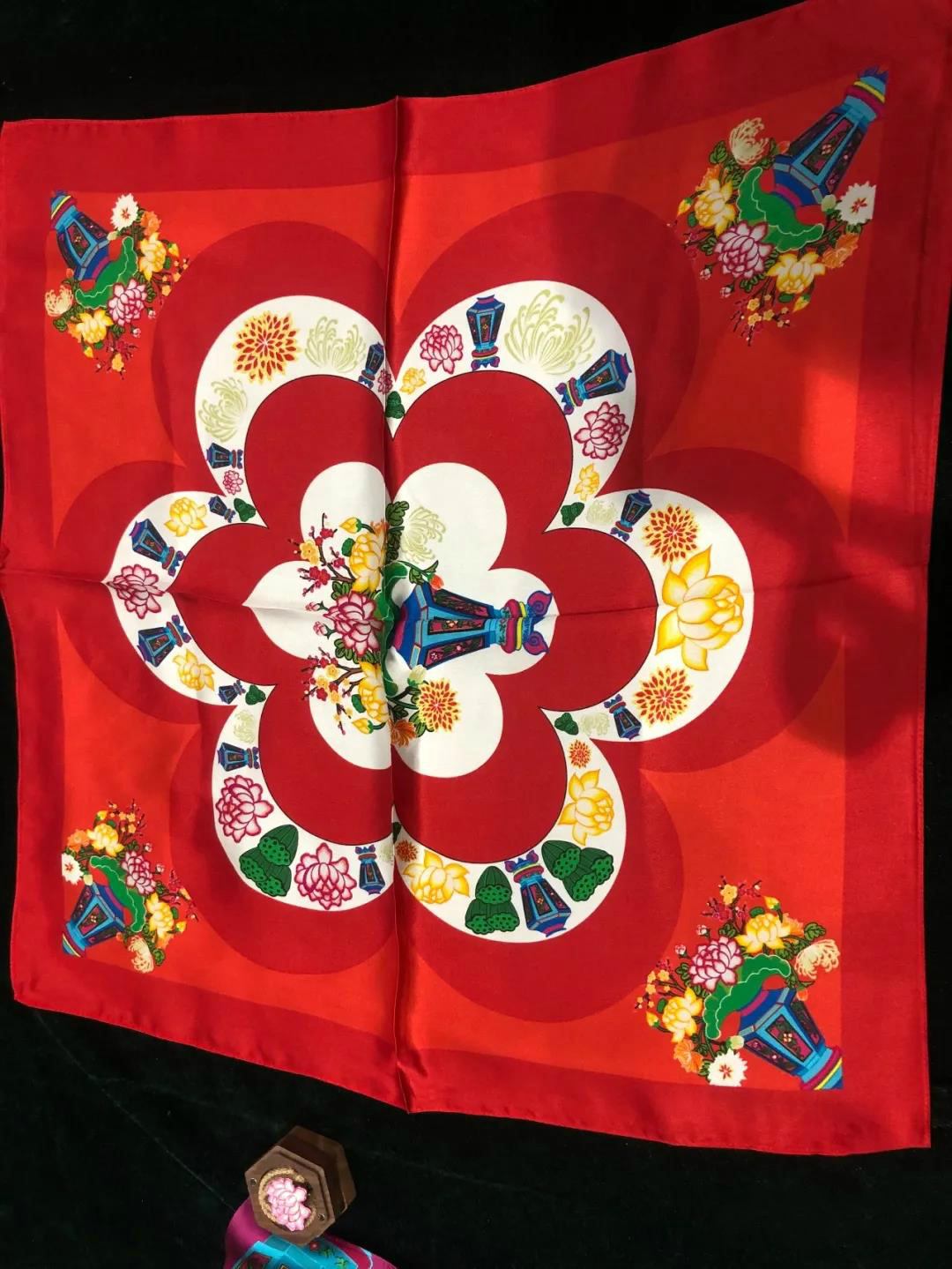 含有武强年画元素的方巾。武强年画博物馆供图