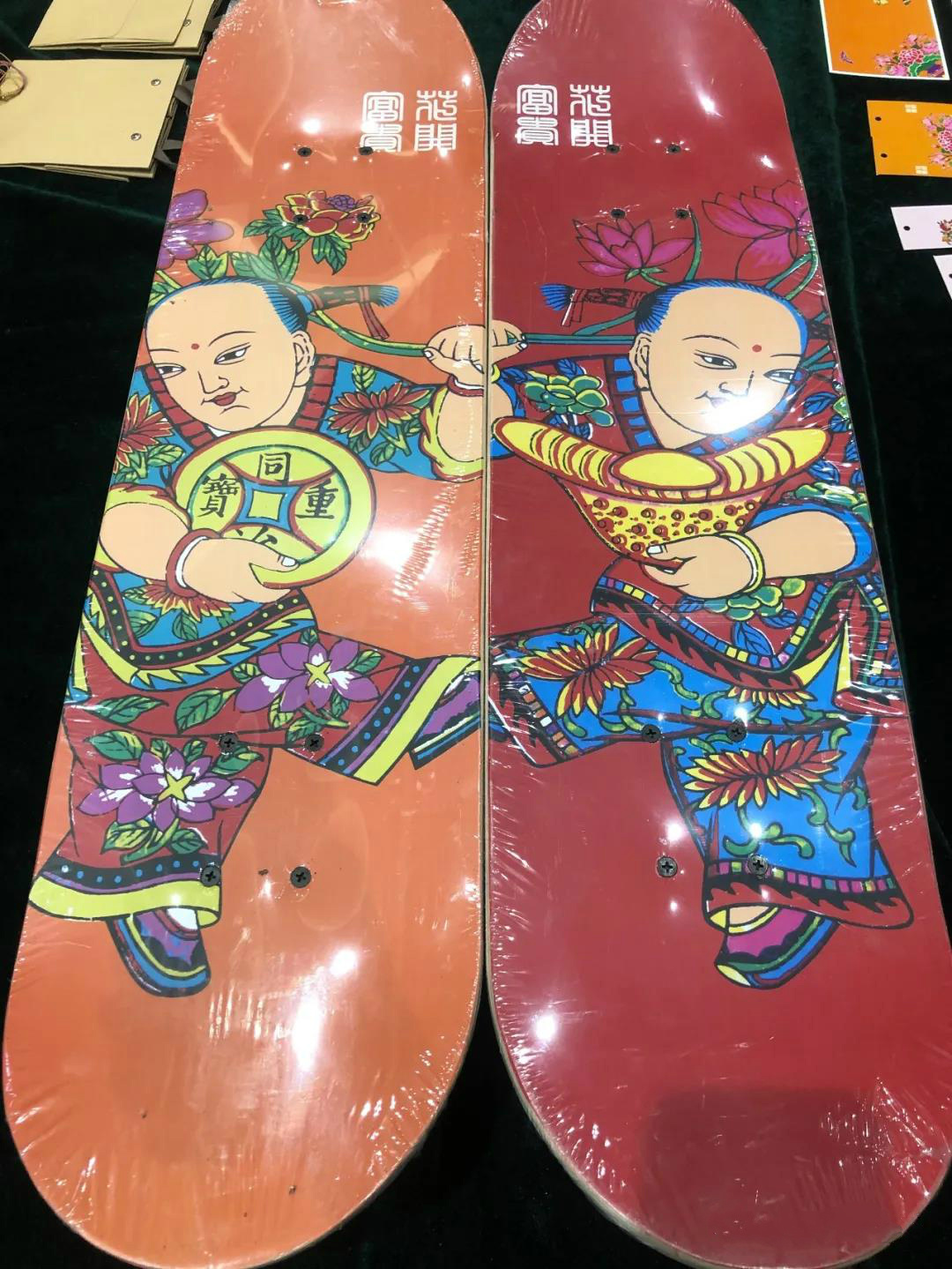 含有武强年画元素的滑板。武强年画博物馆供图
