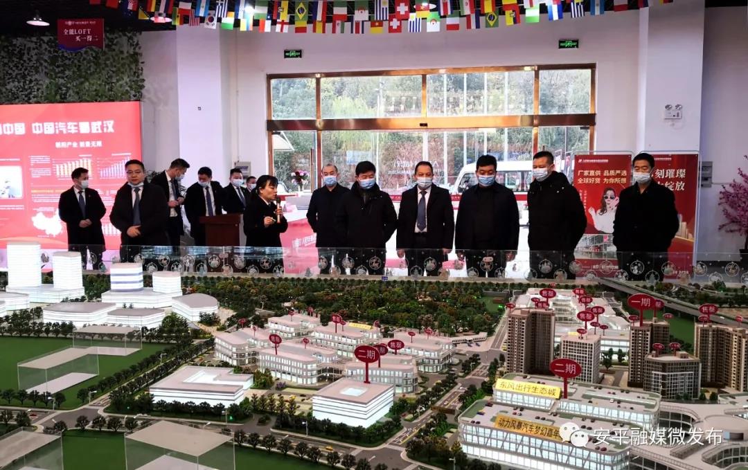 12月14日上午,曹向东一行参观了武汉人民汽车城,并召开座谈会。武汉人民汽车城总经理刘志鹏介绍了项目建设情况。