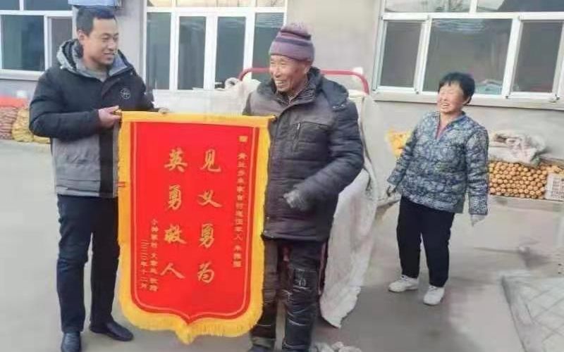 老人家属通过朱加官村村支书找到了朱振国,拿着锦旗和一沓现金登门道谢。“您救人的时候连手机都没来得及掏,这是给您买手机的钱,一定要收下。”面对感谢,朱振国执意婉拒了:“没掏手机怨俺自己,跟你们没关系,这钱俺不能要!”在朱振国看来,一面写有“见义勇为、英勇救人”的鲜红锦旗就是对他最大的褒奖。