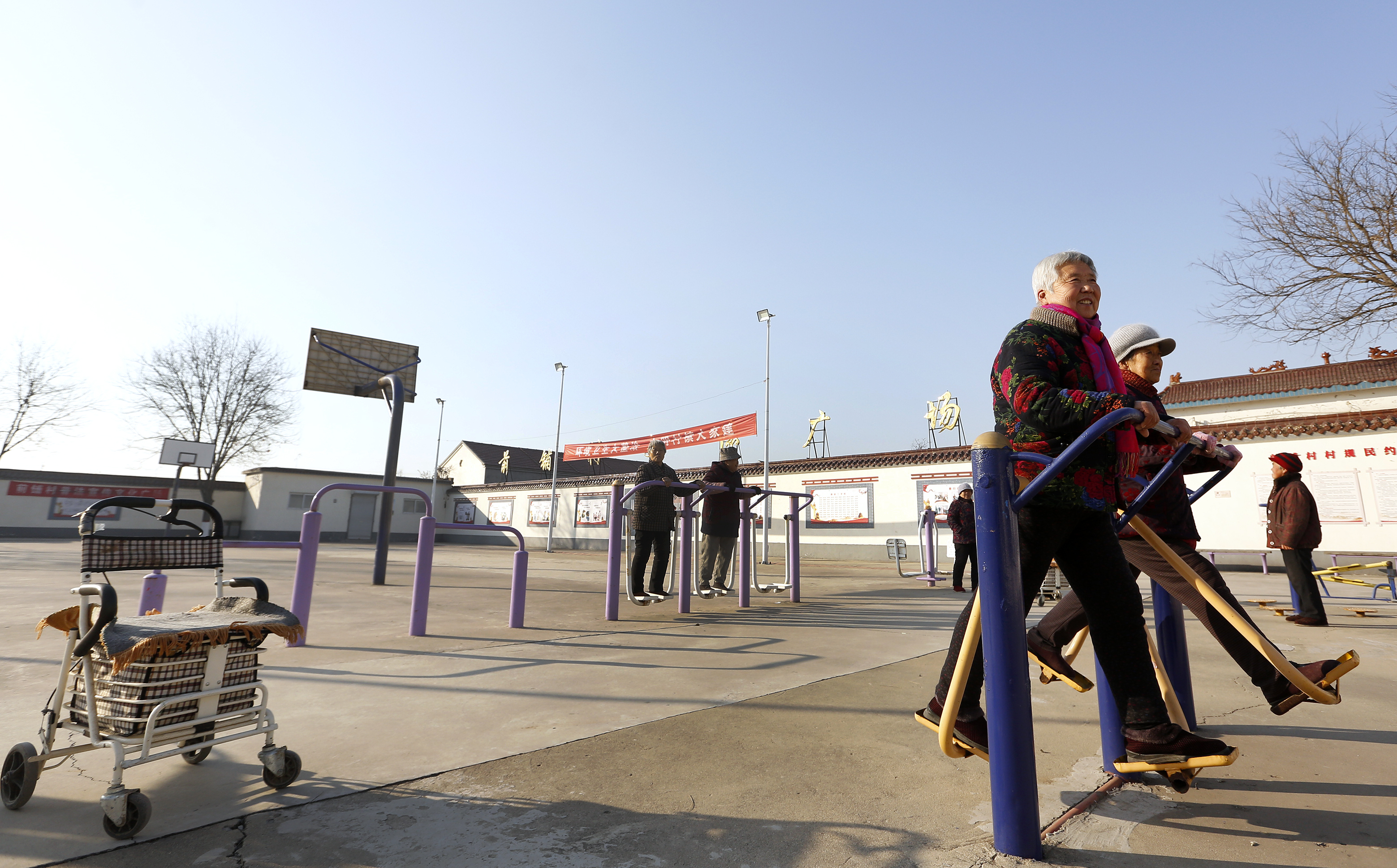 桃城区赵家圈镇前铺村村民在文化活动广场上健身。