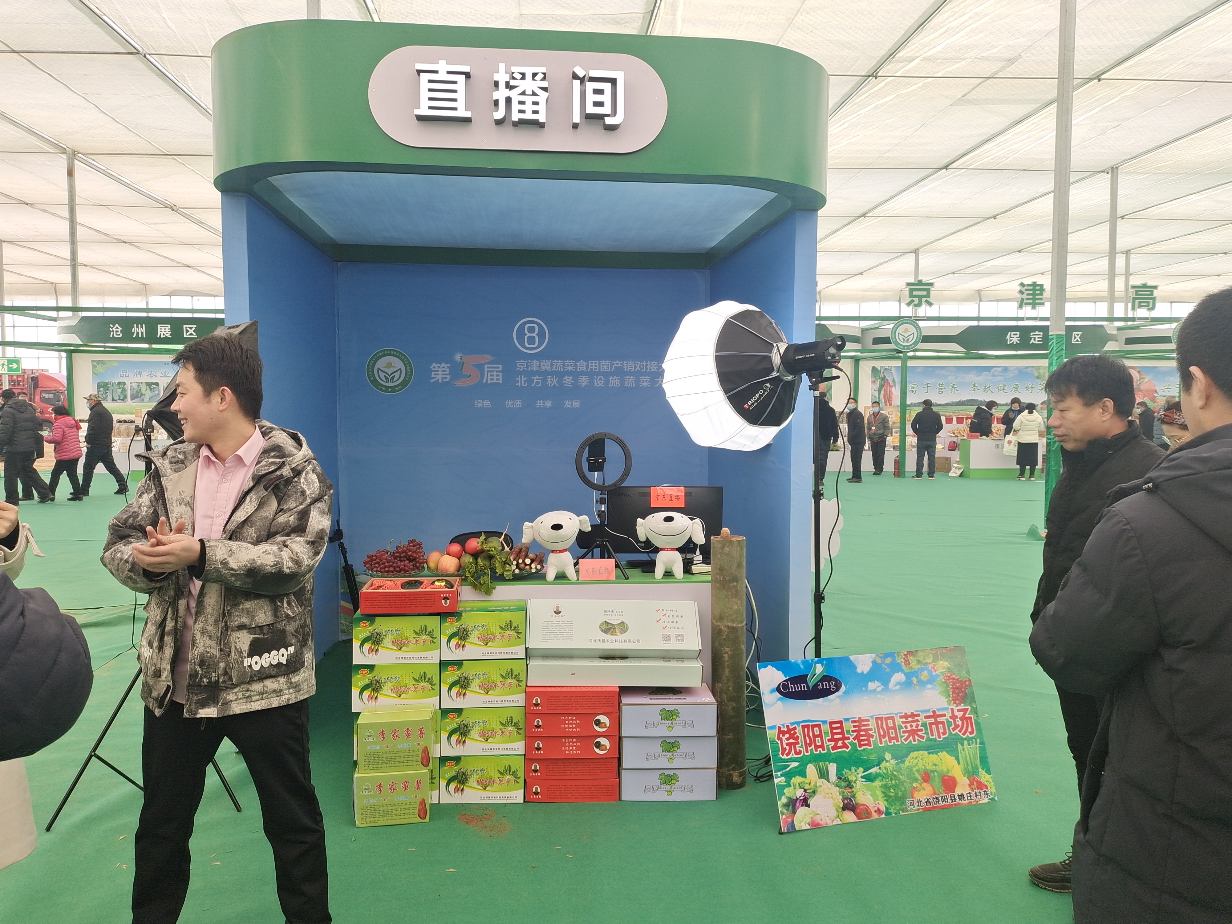 活动中,各地、各企业以“蔬菜”为主题,通过文艺节目或广告宣传等方式在主会场推介当地特色产品,如冀菜之歌、蔬菜展示秀、《诗经》蔬菜等,吸引了大批经销商、采购商驻足观看。同时,组织省内外近30个企业、基地以及菜农进行直播带货,现场推介销售全省精品蔬菜及特色农产品,形成了“全民抖音、全业致富”强大阵势,助力河北蔬菜知名度、影响力、销售量大幅提升。据统计,大会期间共达成产销合作意向45.5万吨,涉及白菜、食用菌、番茄、黄瓜、青椒、豆角、甜瓜等20多类,金额约12.1亿元,河北省蔬菜种植基地与北京新发地盛茂农原商贸有限公司、天津中科建设公司等单位代表合作双方到场签订战略合作协议或采购协议。