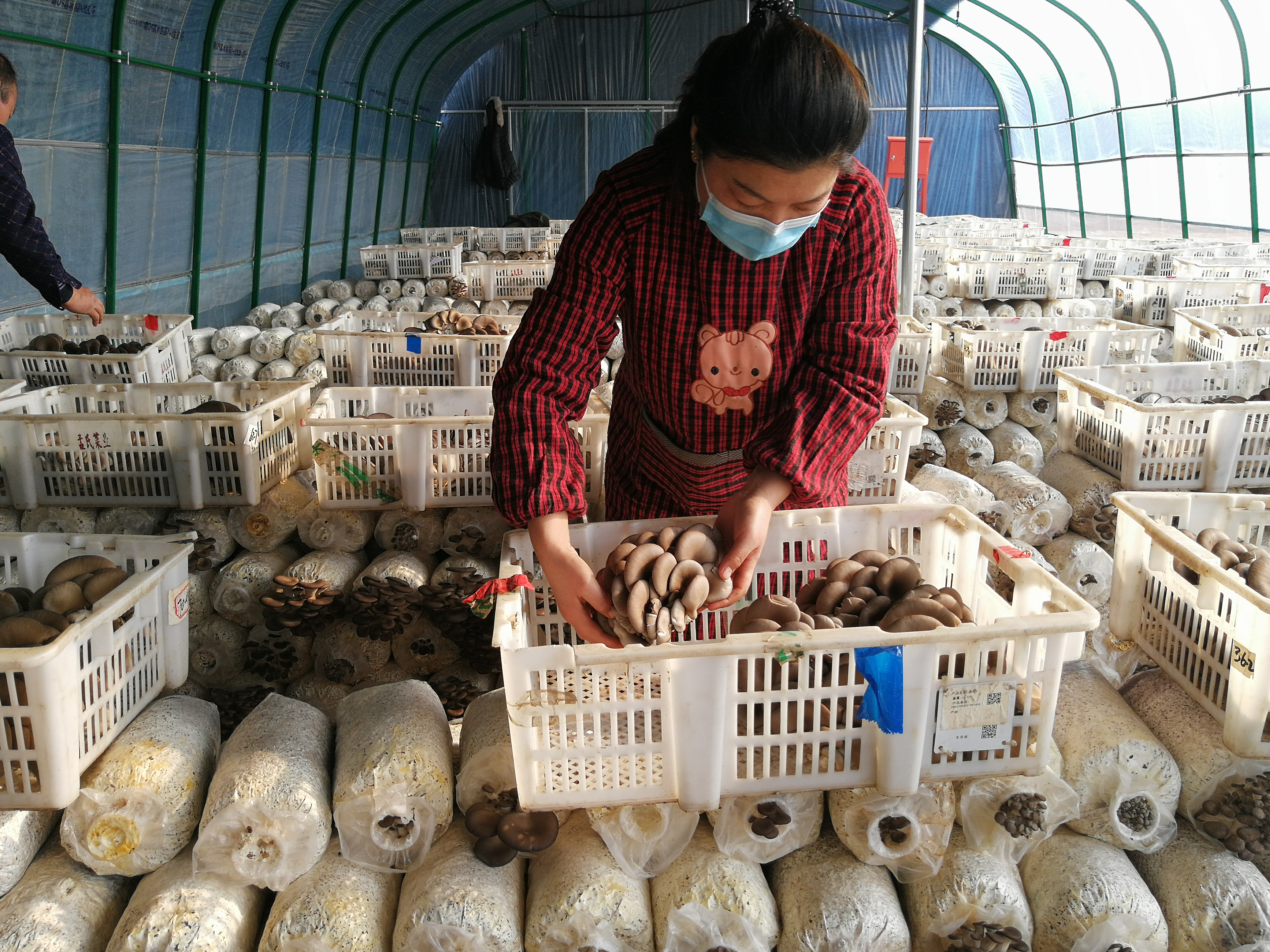大棚里,一簇簇肥美的蘑菇被采下,采菇工人们不时开心地交流两句。“看,多好的蘑菇,也有我们的功劳呢!”“今天,有的忙了。”他们都是附近的贫困户,通过在这里打工走上了脱贫致富路。