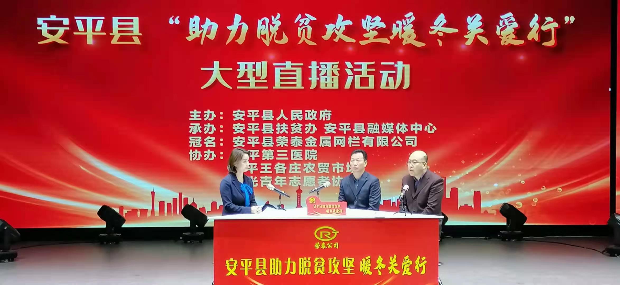据了解,“助力脱贫攻坚暖冬关爱行”慰问活动由安平县人民政府主办,安平县扶贫办、安平县融媒体中心承办,安平县荣泰金属网栏有限公司、安平县第三医院、京平王各庄农贸市场、阳光青年志愿者协会协办。此次慰问活动通过安平电视台、安平人民广播电台FM87.8、安平融媒手机台进行了同步直播,受到了群众们的好评。