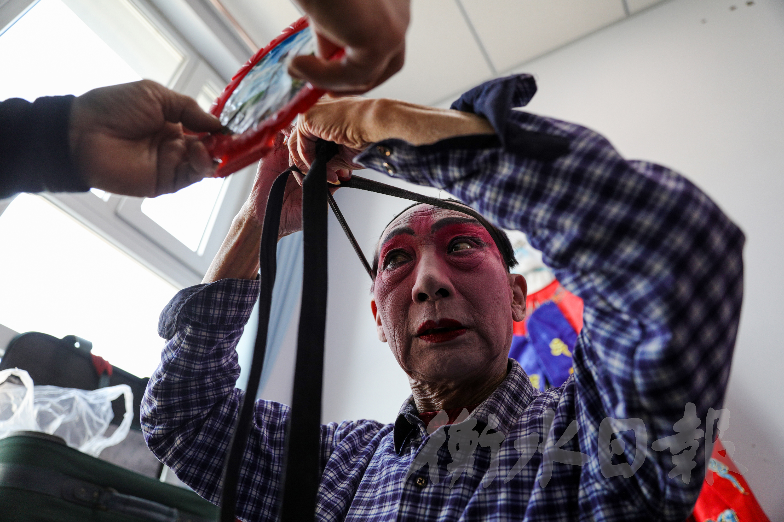 肖世明在上妆。