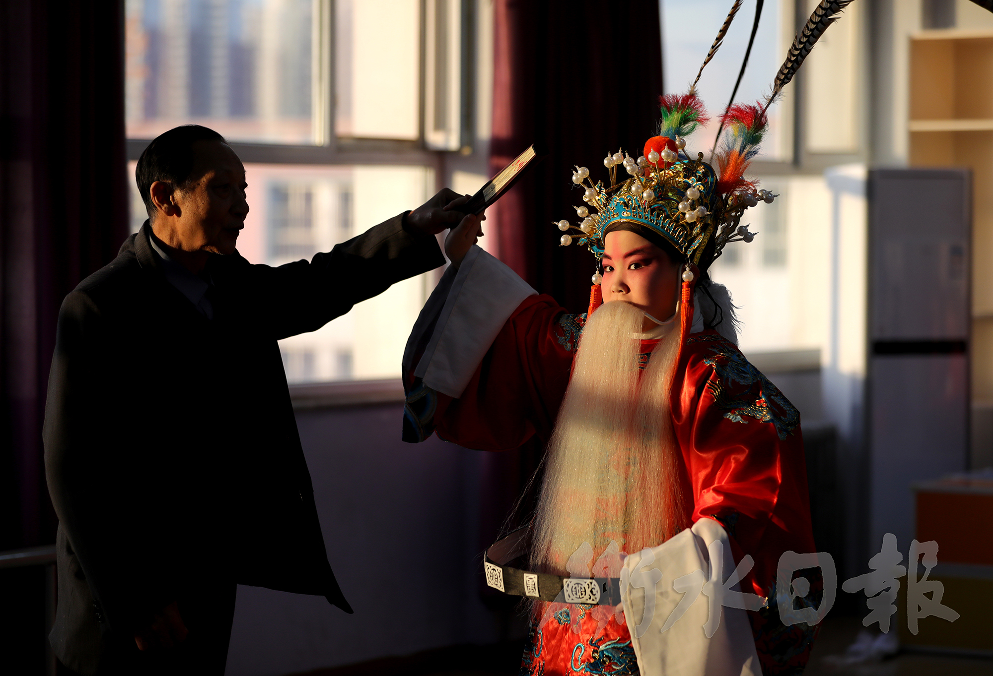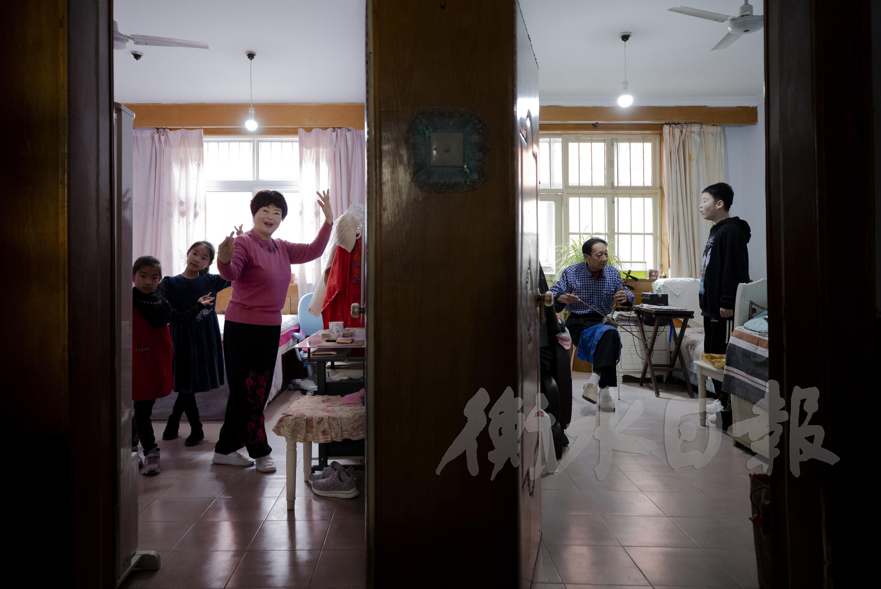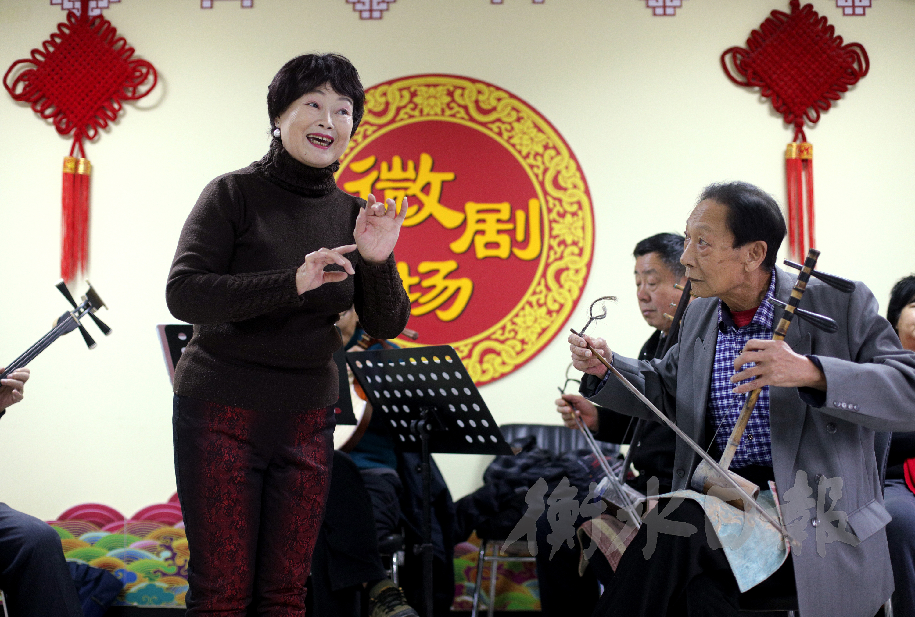12月25日一早,在市民肖世明家中,吃过早饭,他拉着京胡为唱《红娘》的妻子陈荣段伴奏,相得益彰。唱过几段,两人便离开家,匆匆赶往市区胜利路小学,去给京剧社团的孩子们上课。“一天不唱自己知道,两天不唱同行知道,三天不唱观众就知道了。”热爱京剧的两位老人说,他们平时在家吊嗓,去公园、社区演唱,参加邀请演出,四处带学生,日子过得既忙碌又乐呵。