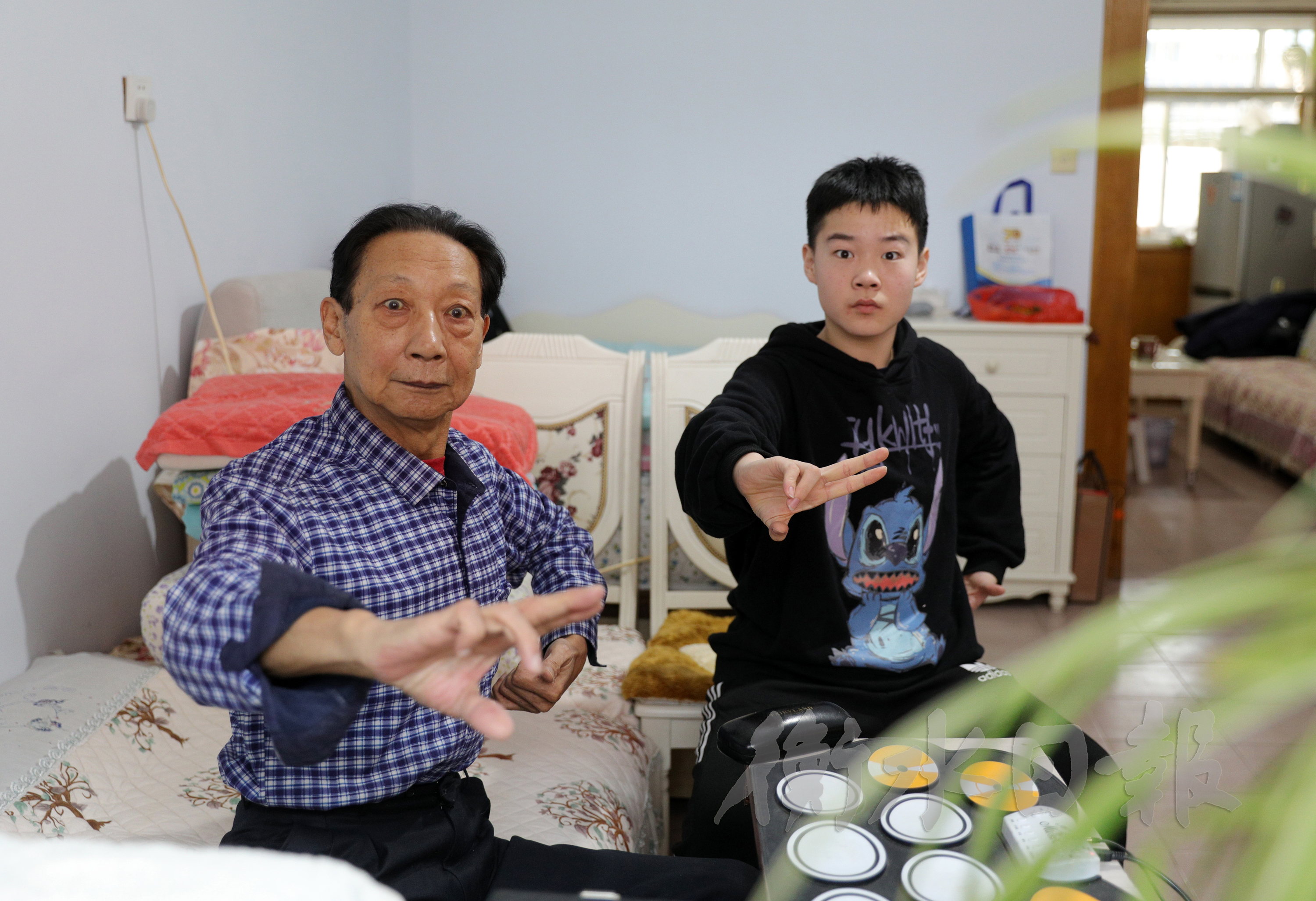 肖世明和陈荣段在家带学生学戏。