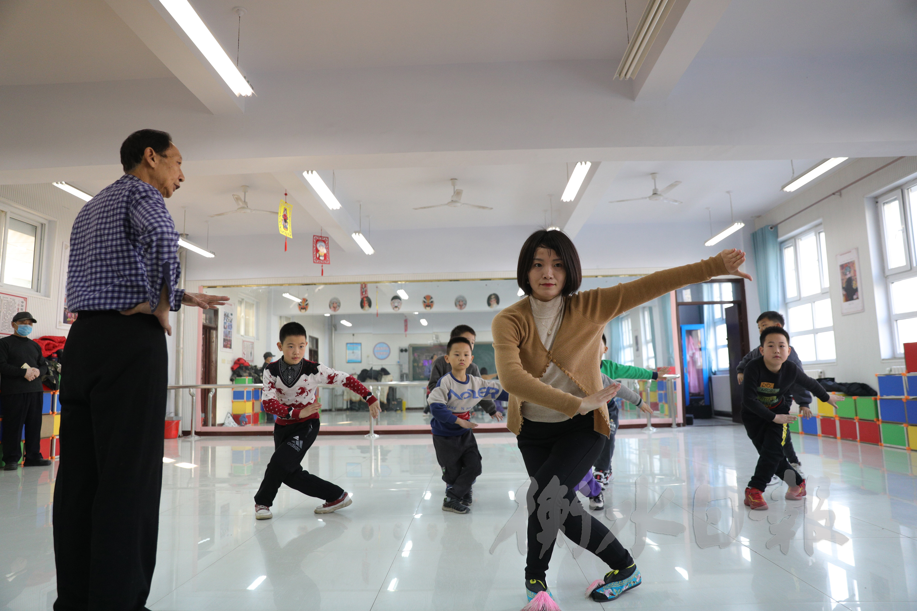 肖世明在胜利小学给京剧社团的老师学生们上课。