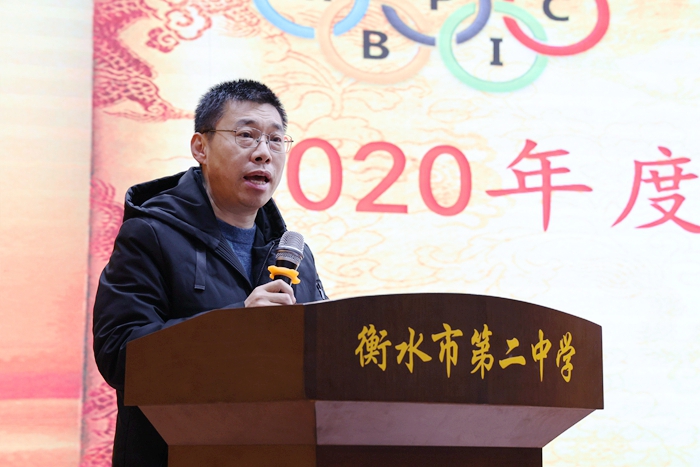 接着,奥赛部主任白延飞作了2020年奥赛部工作总结,他充分肯定了学生们取得的巨大进步以及教练们的辛勤付出,同时寄予了殷切的期望,更提出了新的目标和要求,他希望奥赛部全体学生坚定信念、踏实努力,全面提升状态,勇于挑战自我、超越自我,以昂扬的斗志、必胜的信念拼搏2021奥赛之路。