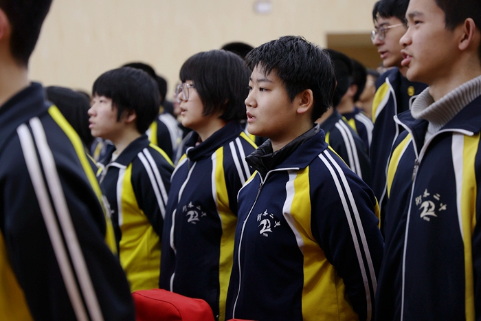 在白延飞主任的带领下,全体学生进行了集体宣誓,铮铮誓言彰显了学生们凝心聚力、勇攀高峰的如虹气势。最后,表彰大会在奥赛部全体师生高声合唱的奥赛部之歌《年少如风》中圆满结束。大会的成功举行极大鼓舞了全体奥赛师生的拼搏热情,他们纷纷表示将以更大努力、更优成绩谱写奥赛部发展路上更加璀璨的篇章。(通讯员 王玮)