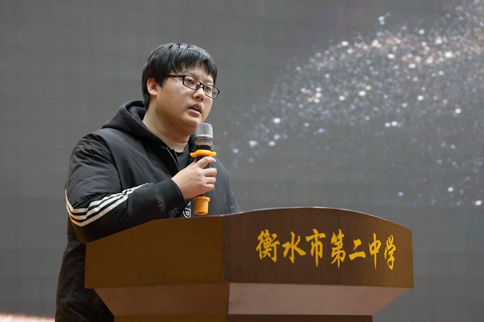 随后,孟延灵、于鹏飞、刘京京、张存涛、郝帆帆五位老师分别发言,他们结合自身工作经历总结了一年来的成长收获,展望了未来工作,表达了戒骄戒躁、继续努力、争取带领学生考出更优异成绩的坚强决心。生物教练于鹏飞老师代表全体奥赛教练做了表态发言,表达了全力以赴、再创佳绩的信心和勇气。