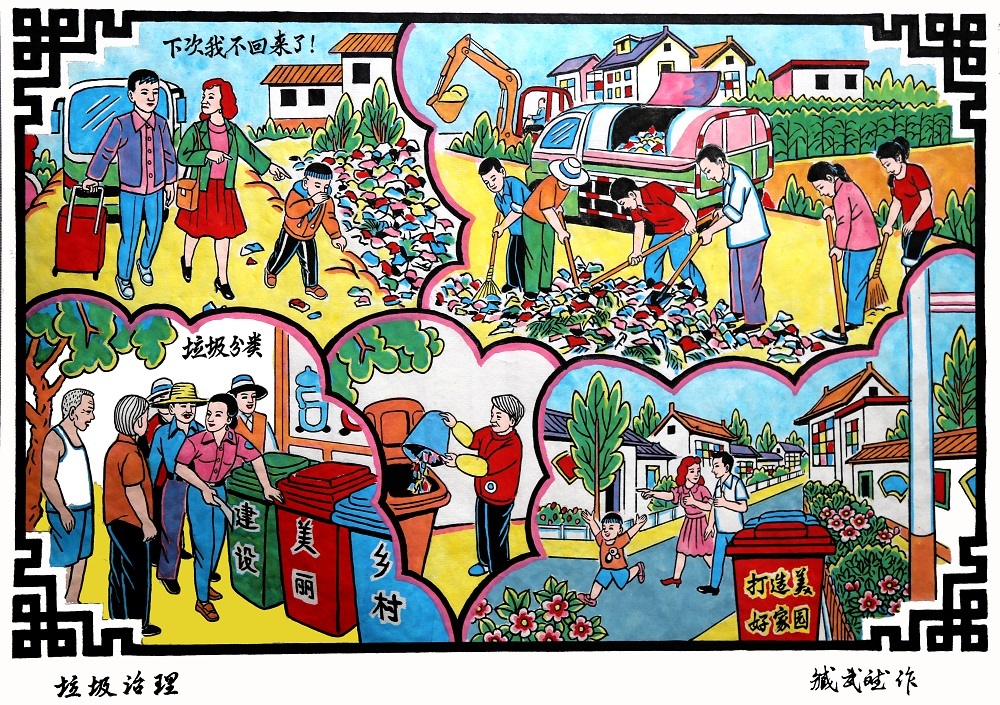 武强年画艺人创作的新年画作品《垃圾治理》。武强县委宣传部供图