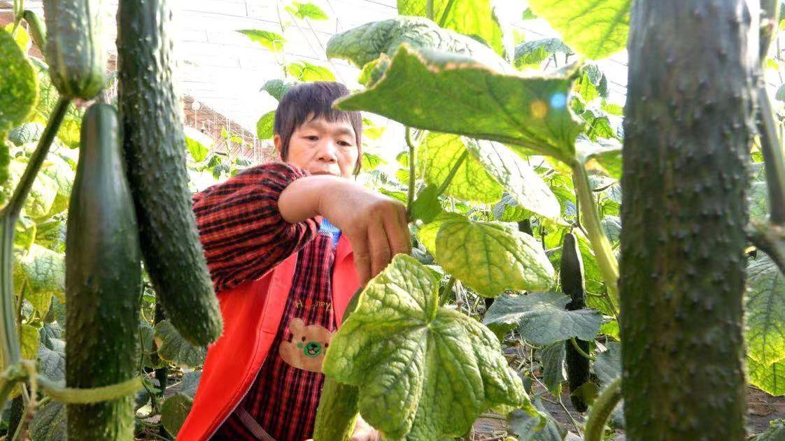 大棚黄瓜丰收。杜柏桦 摄