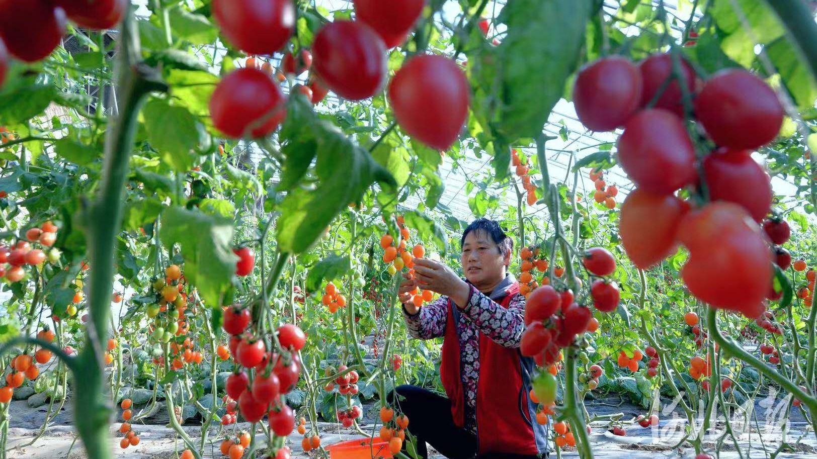 饶阳菜农采摘大棚西红柿。杜柏桦 摄