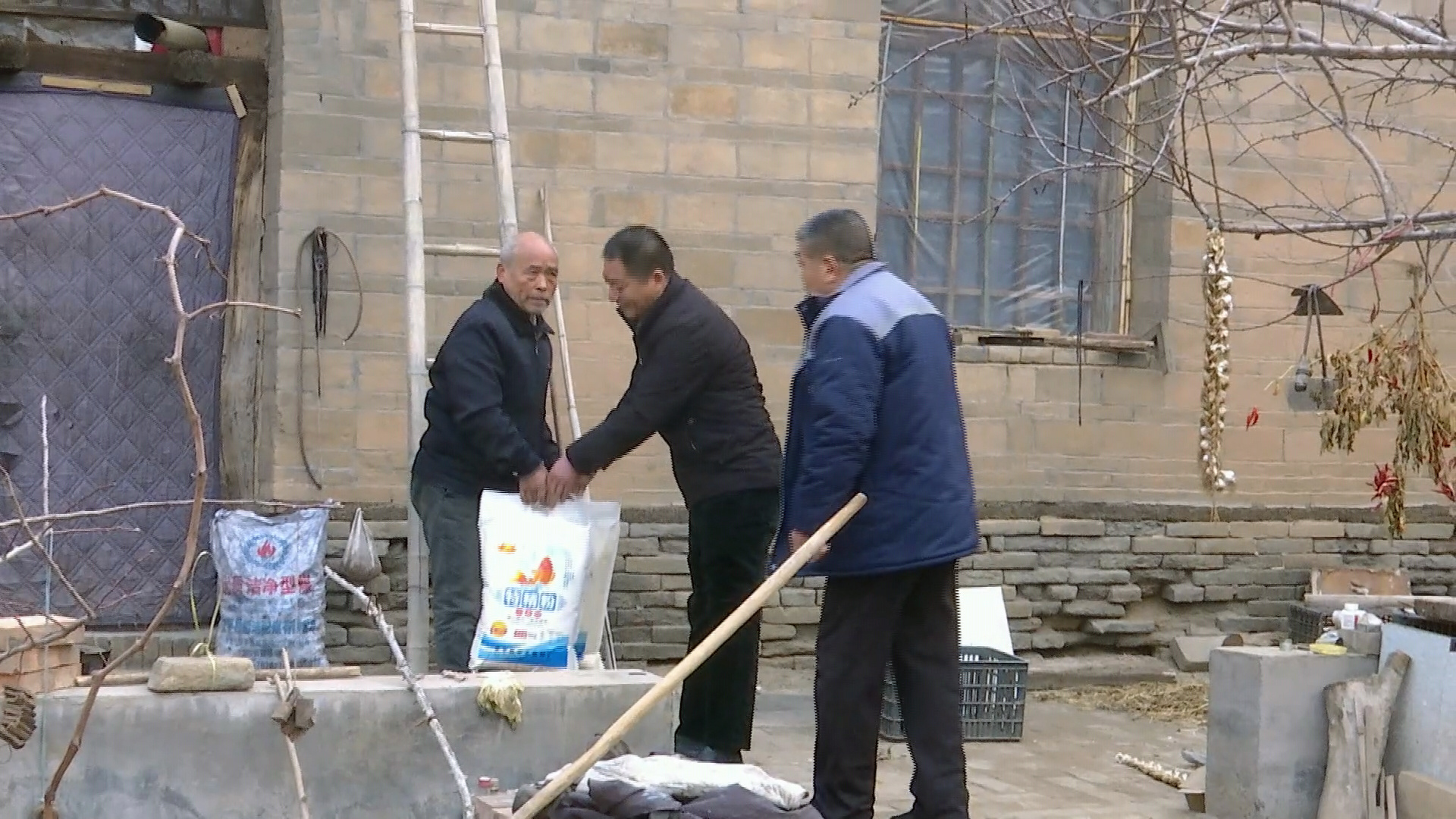 王胡林村党员干部把慰问品送到一位贫困户家中。谢朝华摄