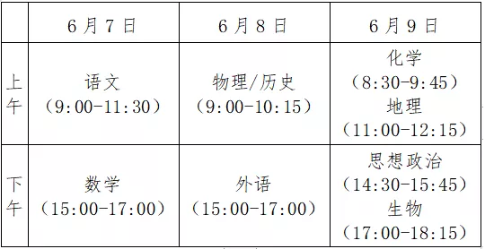 考试时间安排在6月7日—9日。语文科目考试时长为150分钟,数学、外语科目考试时长均为120分钟,选择性考试科目每科考试时长均为75分钟。