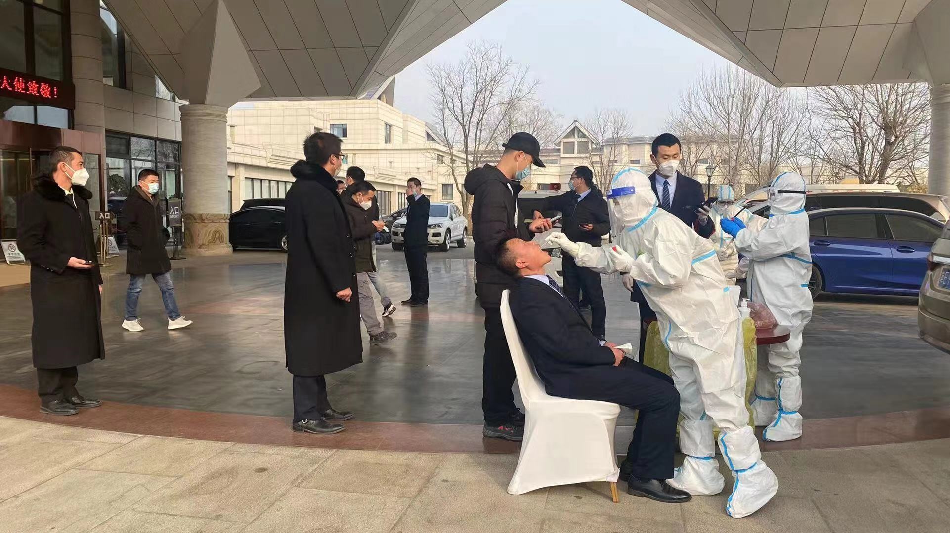 今天上午8时许,医护人员顺利抵达藁城,并按照任务分工迅速投入当地核酸检测工作中。