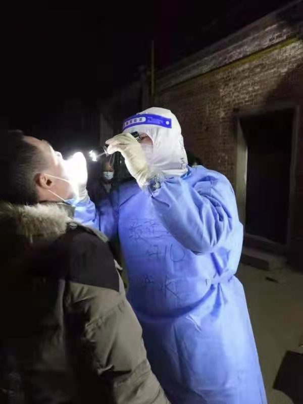 25名医护人员先后抵达藁城后,随即投入工作。每天早晨7时许,他们集合出发采样,至晚6-9时许回驻地。期间,为了方便居民就近接受检测,他们在居民家的门洞、乡卫生所、操场、小区仓库等地,一待就是一天。偶尔,他们还会乘坐电三轮走街串巷,入户为出入不便的村民们采样。