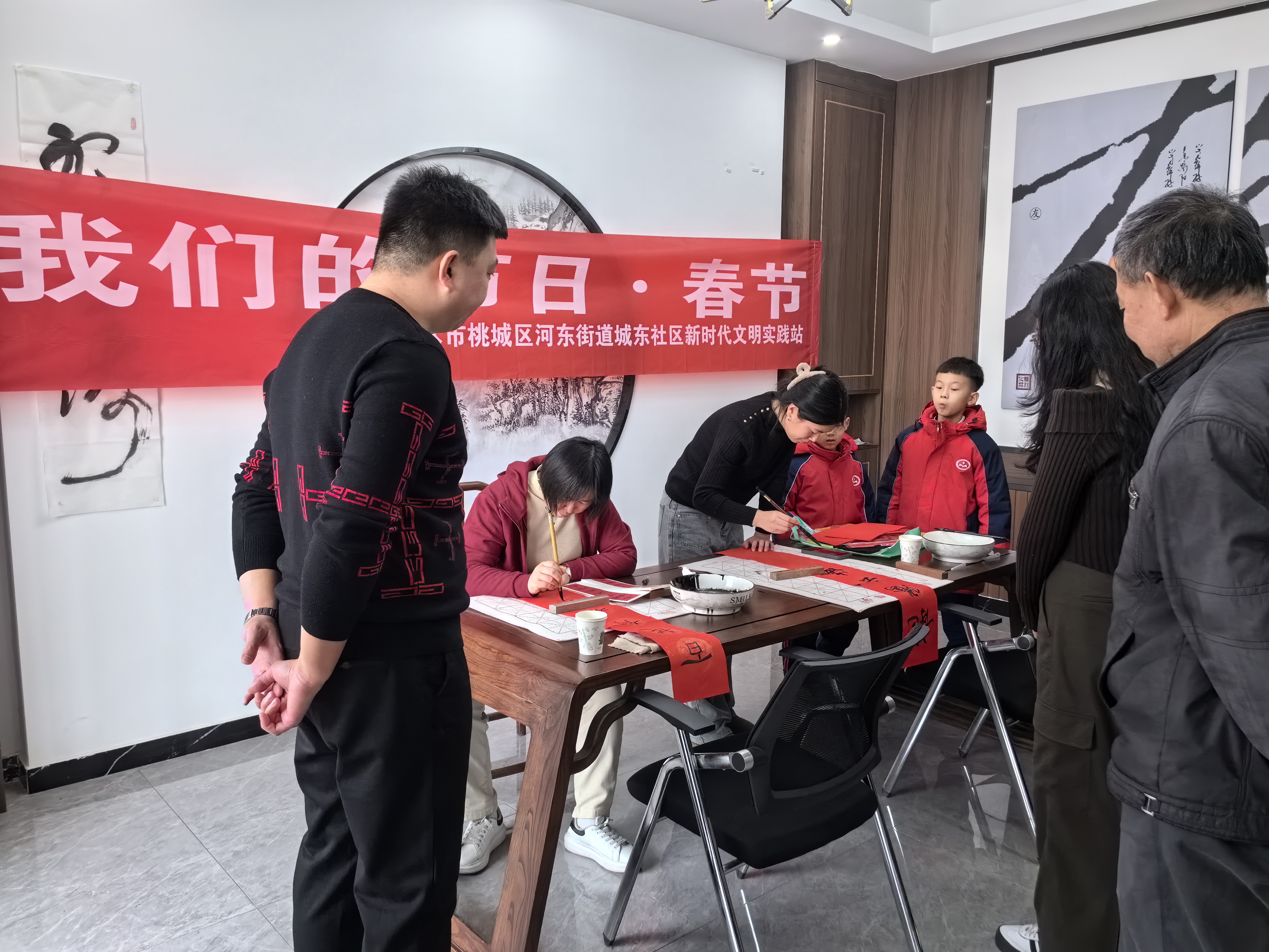 当天上午,书法家们共书写春联和“福”字1000多件,全部送到了百姓手中,让人们在感受中国书法文化魅力的同时,也提前感受到浓郁的节日气息。