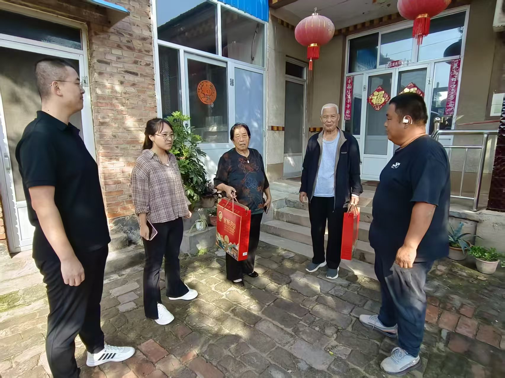 妇联工作人员为老党员刘文轩送去节日问候。饶阳县妇联供图