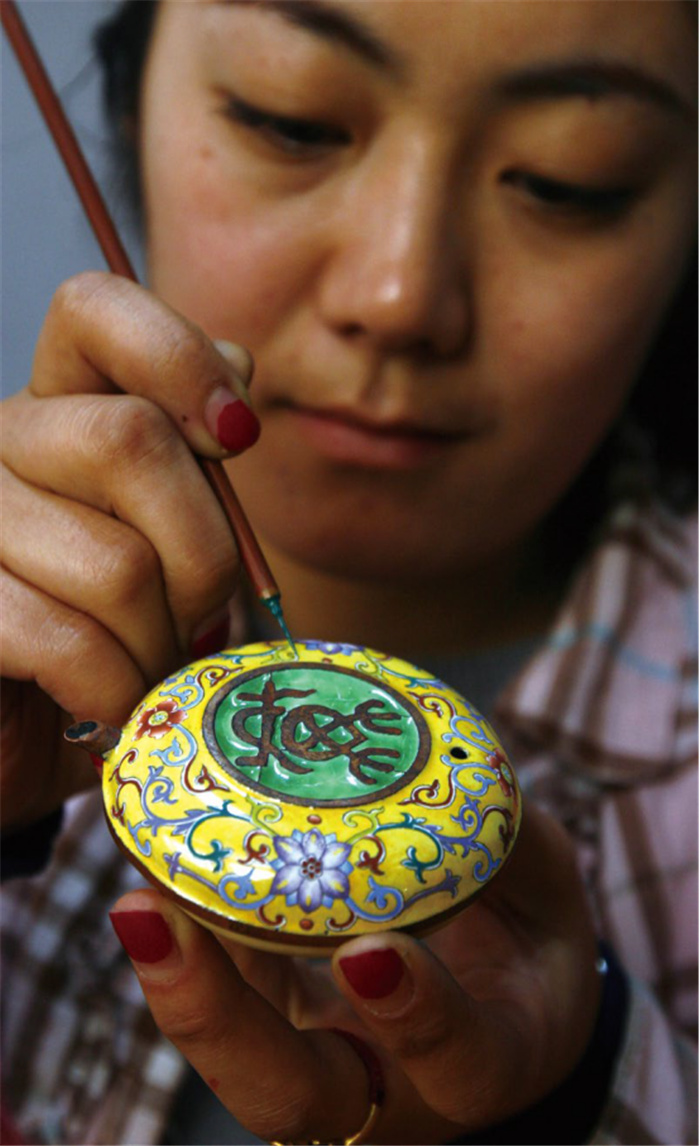 景县铜胎画珐琅技艺以“传承技艺、弘扬文化、回报社会”为己任,积极参与政府组织的各项文化活动,深入融合景县文化,积极参与大运河文化建设,奏响了新时代主旋律。张会芬介绍,公司现已拥有53名传承人,并在传承实践的基础上不断研发创新,尝试将铜胎画珐琅展现到摆件、家居、饰品上来,希望将这项艺术大众化、平民化,让这门古老的艺术走进寻常百姓家,用指尖打造出属于国人的“奢侈品”。