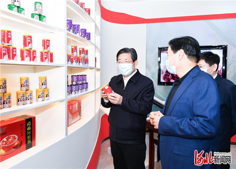 3月25日上午,省委书记、省人大常委会主任王东峰在石家庄市调研检查。这是王东峰在同福大健康食品城,详细了解企业生产运营情况,察看中央厨房生产线和产品展示。 河北日报记者赵威摄