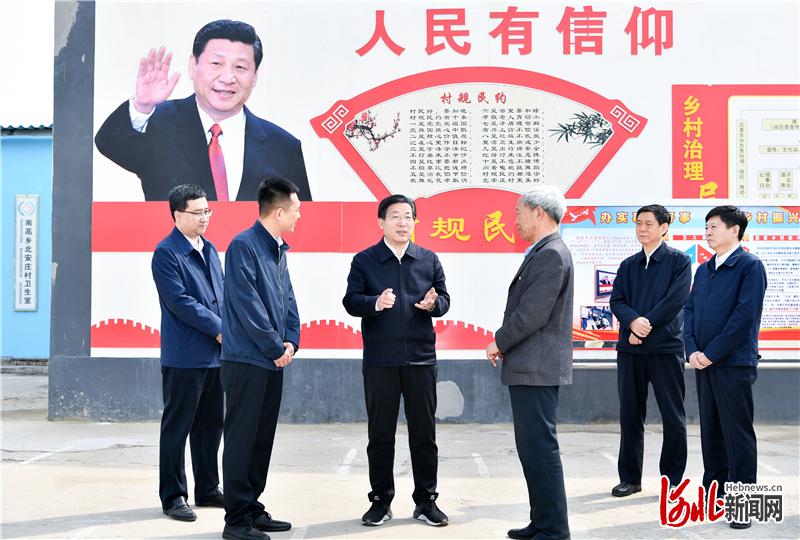 3月25日上午,省委书记、省人大常委会主任王东峰在石家庄市调研检查。这是王东峰在栾城区北安庄村,听取基层党建、农村“两委”换届、乡村振兴等工作汇报。 河北日报记者赵威摄