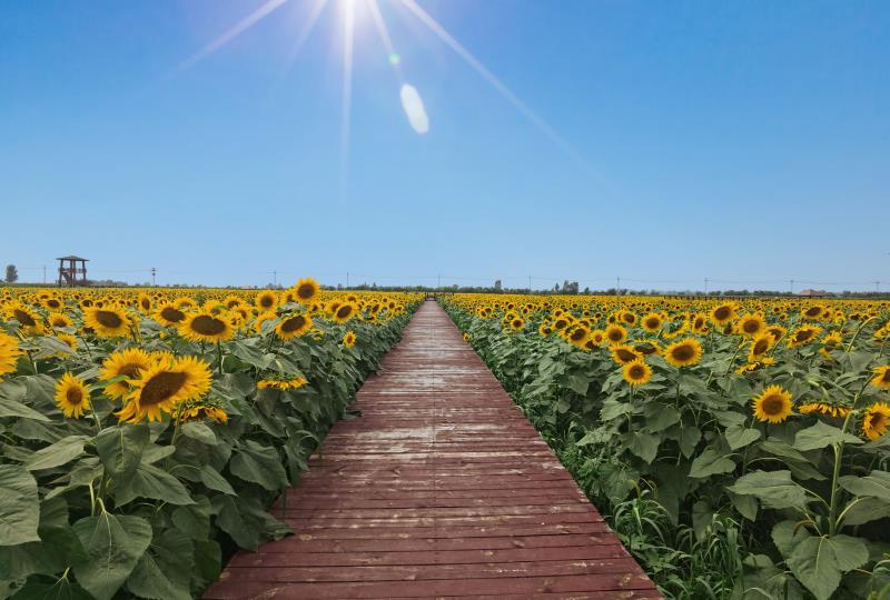 杨屯万亩花海景区紧邻安平县城,距北京、天津约2小时车程,距雄安新区直线距离46公里。景区总占地面积24.4平方公里,辖7个村庄,建设用地5000余亩,南水北调工程中京唐南、北分干渠两条水系贯穿其中,水域充足。