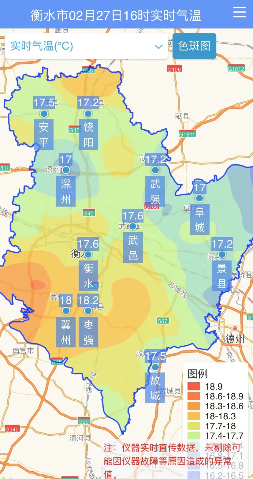 刚刚过去的周末两天,云量增多,衡水各地多云相伴,但气温非常舒适,大部分地区最高气温在20℃左右。据衡水市气象台预报,多云的情况将持续到4月12日,随着一股冷空气的到来,大风将会吹散云层,气温也会有所波动。春天天气多变,气温起起伏伏,大家一定要根据天气变化来调整着装。