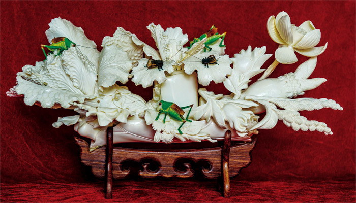 饶阳的骨雕艺术家们在创作上运用的手法让人叹为观止:一件普通的兽骨经过雕刻师们蒸煮晾晒,剔、凿、锯、锉、雕、磨,变成了玲珑剔透的蝈蝈、白菜、龙舟等工艺品,从一根毫不起眼的白骨变成一件珍宝,全靠着雕刻家这一双灵巧的手、玲珑的心以及专注雕刻的灵魂。饶阳雕刻师手中的刀是他们表达自己审美追求的途径。他们先由内向外,一步步减去废料,循序渐进地将形体显现出来,在一次次的减法中,他们悉心感受着各种刀法带来的效果和特殊韵味,这个渐进的过程是探索的过程,是追求艺术美的过程。刻刀对于雕刻家来说,就好像画家手中的笔。雕刻师们以刀为笔在一件件骨料中游走,在反复的雕刻之中找出了最适合自己的表达方式,从而将技术变成了艺术。饶阳这一片土地不是只有前人留下的遗迹和几个有来历的地名,更重要的是有一群擅于传承千年文化并使之发扬光大的能工巧匠。