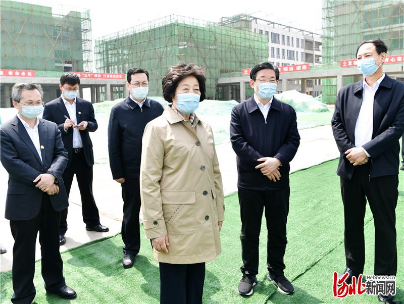 中共中央政治局委员、国务院副总理孙春兰4月15日到河北雄安新区调研并召开现场办公会。这是孙春兰考察“三校”交钥匙项目施工现场,了解教育卫生支持雄安新区建设情况。 河北日报记者 赵威 摄