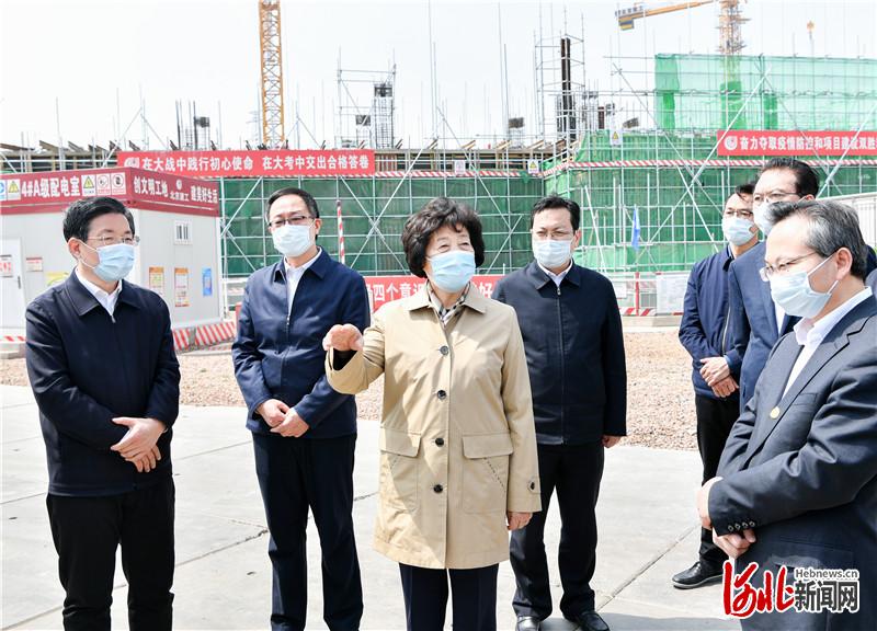 中共中央政治局委员、国务院副总理孙春兰4月15日到河北雄安新区调研并召开现场办公会。这是孙春兰考察雄安宣武医院施工现场,了解教育卫生支持雄安新区建设情况。河北日报记者 赵威 摄