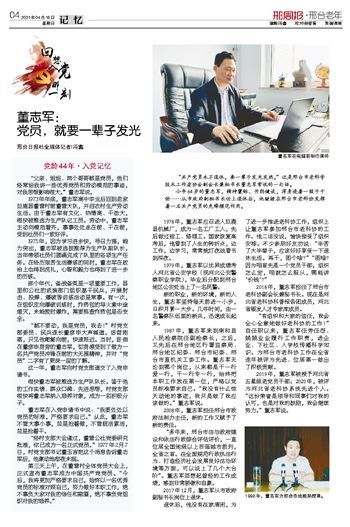 今年64岁的董志军,精神矍铄、开朗健谈,浑身透着一股子干劲……从市政府副秘书长任上退休后,他继续在邢台市老科协发挥着一名共产党员的先锋模范作用。