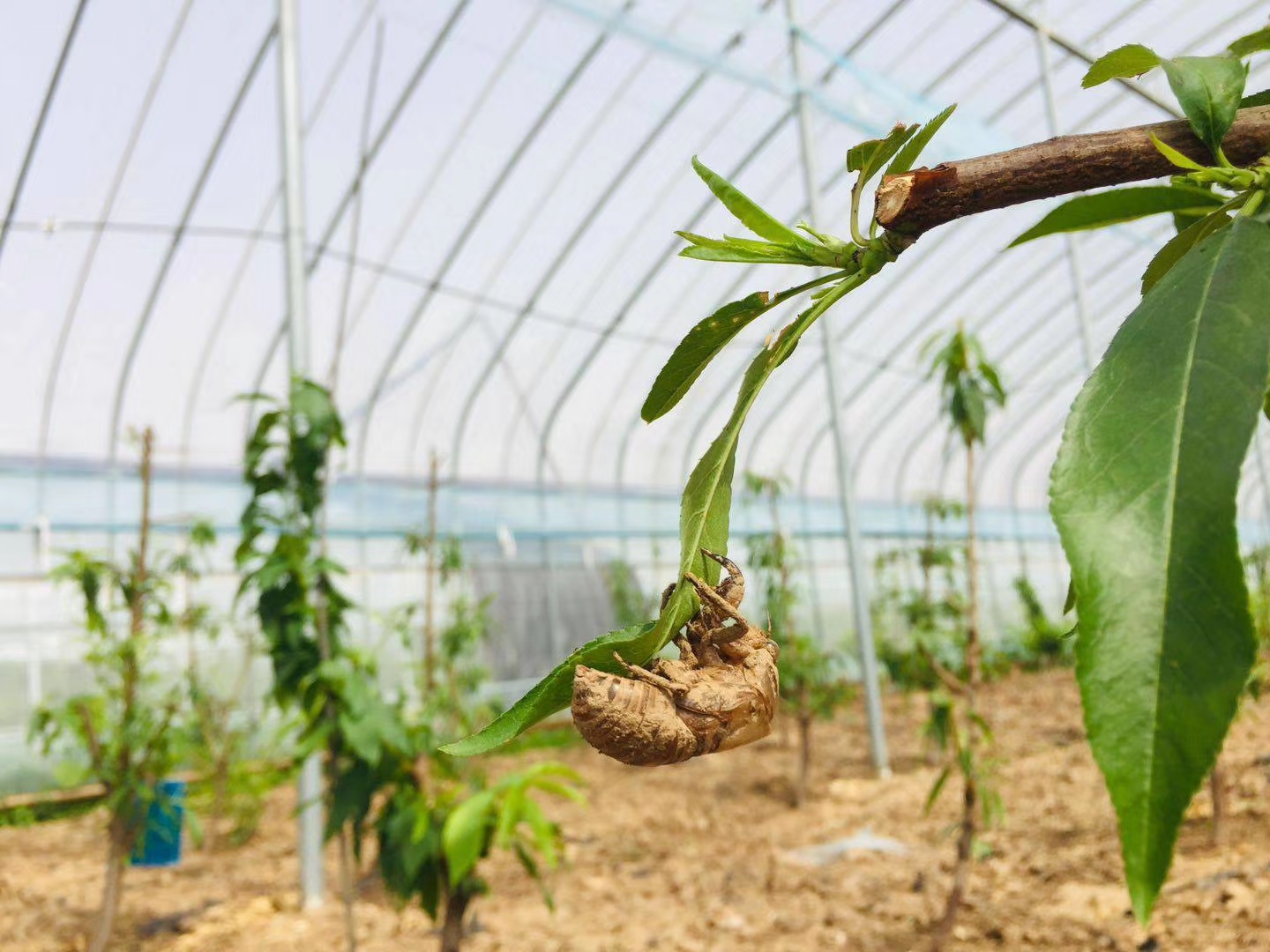 吴以路所在的茂丰产业园区,种有桃树、芦笋等,地下养有金蝉,可以说“植物脚下就是金蝉的乐园”。金蝉养殖成本低,投入少,人工干预后,养殖周期大概为三年,这三年靠吸吮树根的汁液生长,整个养殖过程无需喂食管理等步骤。