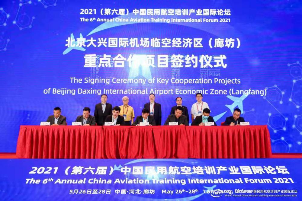 同时,河北临空集团有限公司与安胜(天津)飞行模拟系统有限公司、北京蓝天航空科技股份有限公司、上海华模科技有限公司、江苏普旭科技股份有限公司、西安杰西航空科技有限公司以及成都紫瑞青云航空宇航技术有限公司六家航空飞行模拟器生产、研发、培训等相关企业签订合作备忘录,项目总投资额达26亿元。