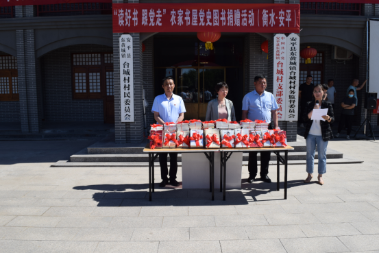 为宣传党的百年光辉历程、弘扬革命传统和红色精神,充分发挥新华书店的社会主义精神文明窗口和党的宣传思想文化阵地的作用,5月28日下午,衡水市新华书店在安平县东黄城镇台城村组织开展了“读好书 跟党走”党史书籍进农村捐赠活动。