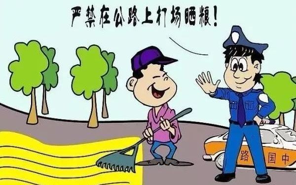 在此也提醒农民朋友:为了您和他人的安全,请不要在公路上打场晒粮。