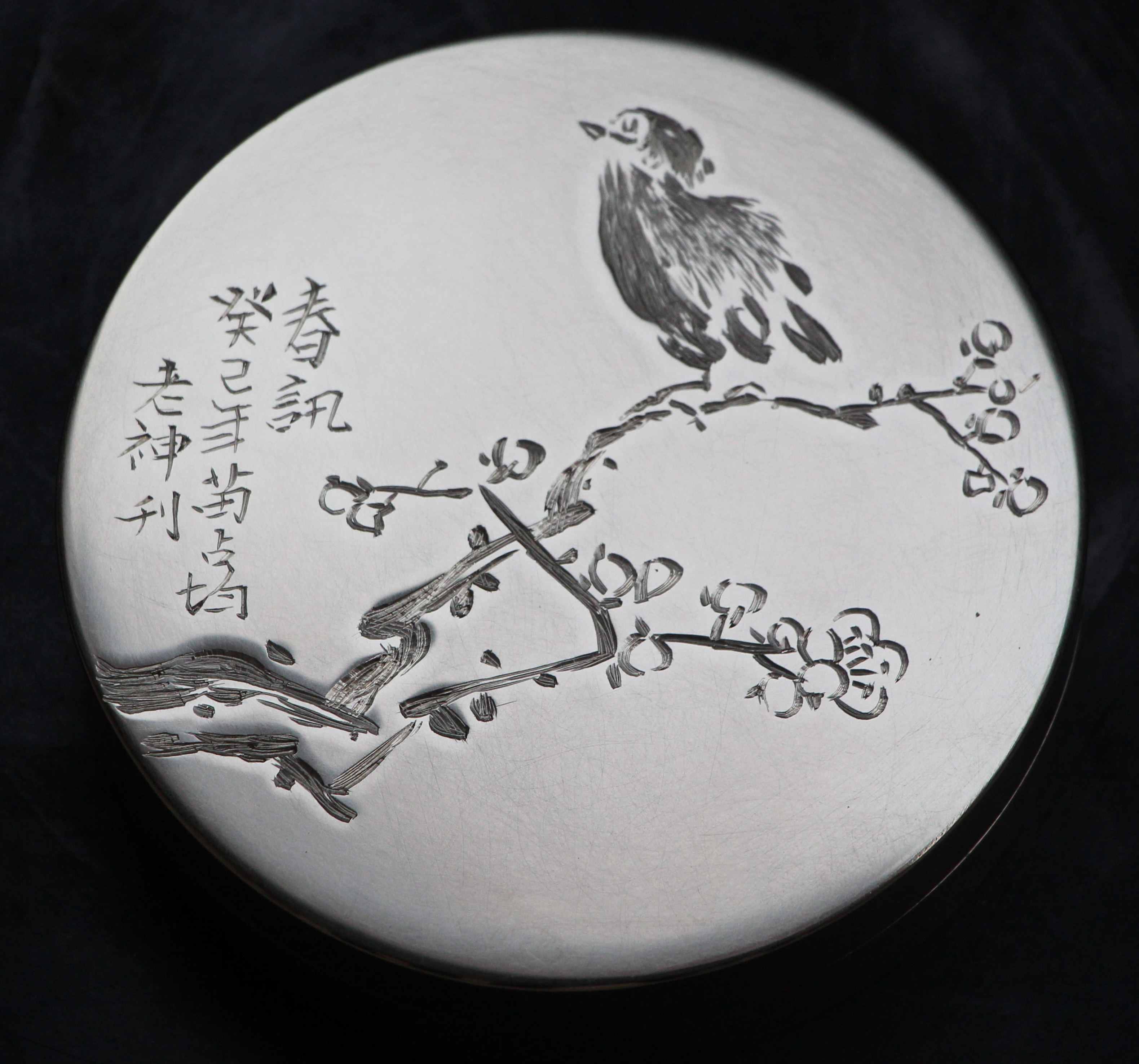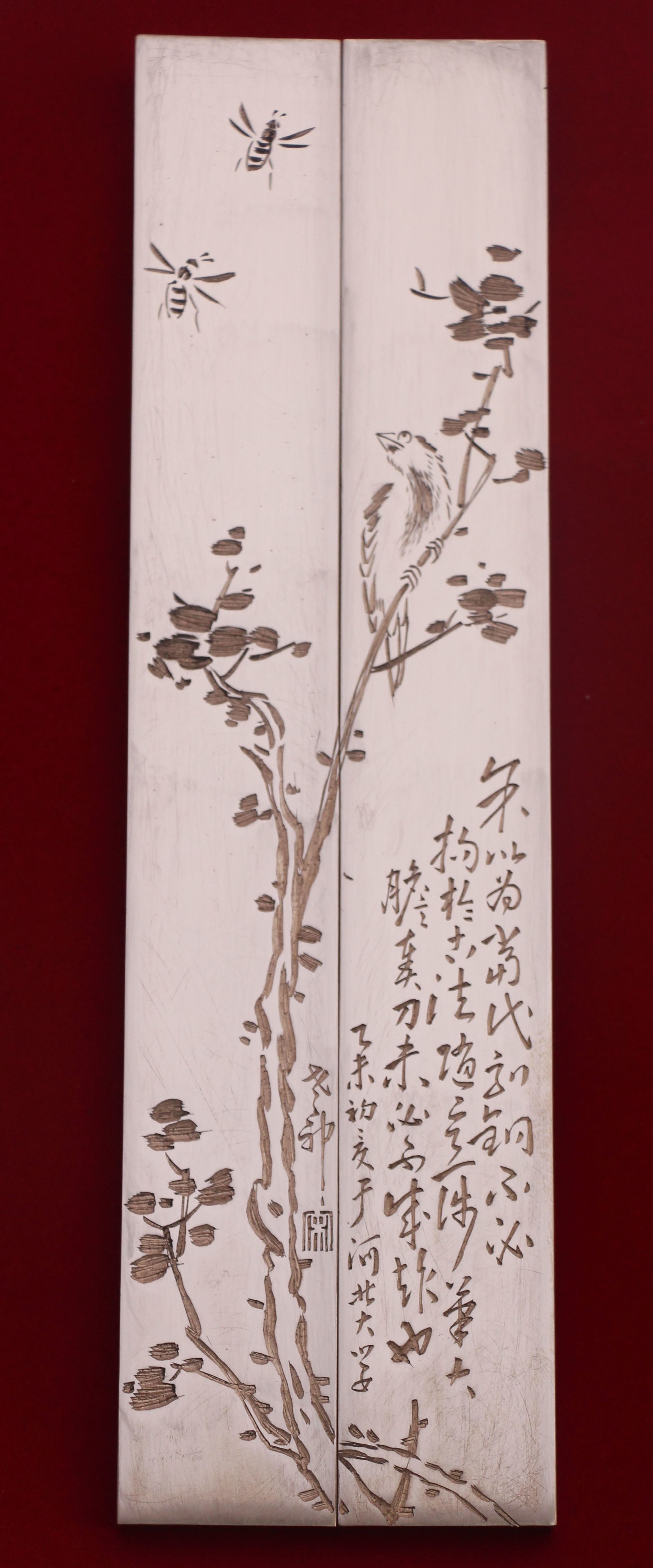 近年来,宋国柱所创作的刻铜精品日渐增多,他的作品“画面清新静谧,人物仙风道骨,使人有超然物外之感”,其所刻老梅“横空出世,冰肌铁骨,迎雪怒放,栩栩如生”,画、刻之精,实属罕见。