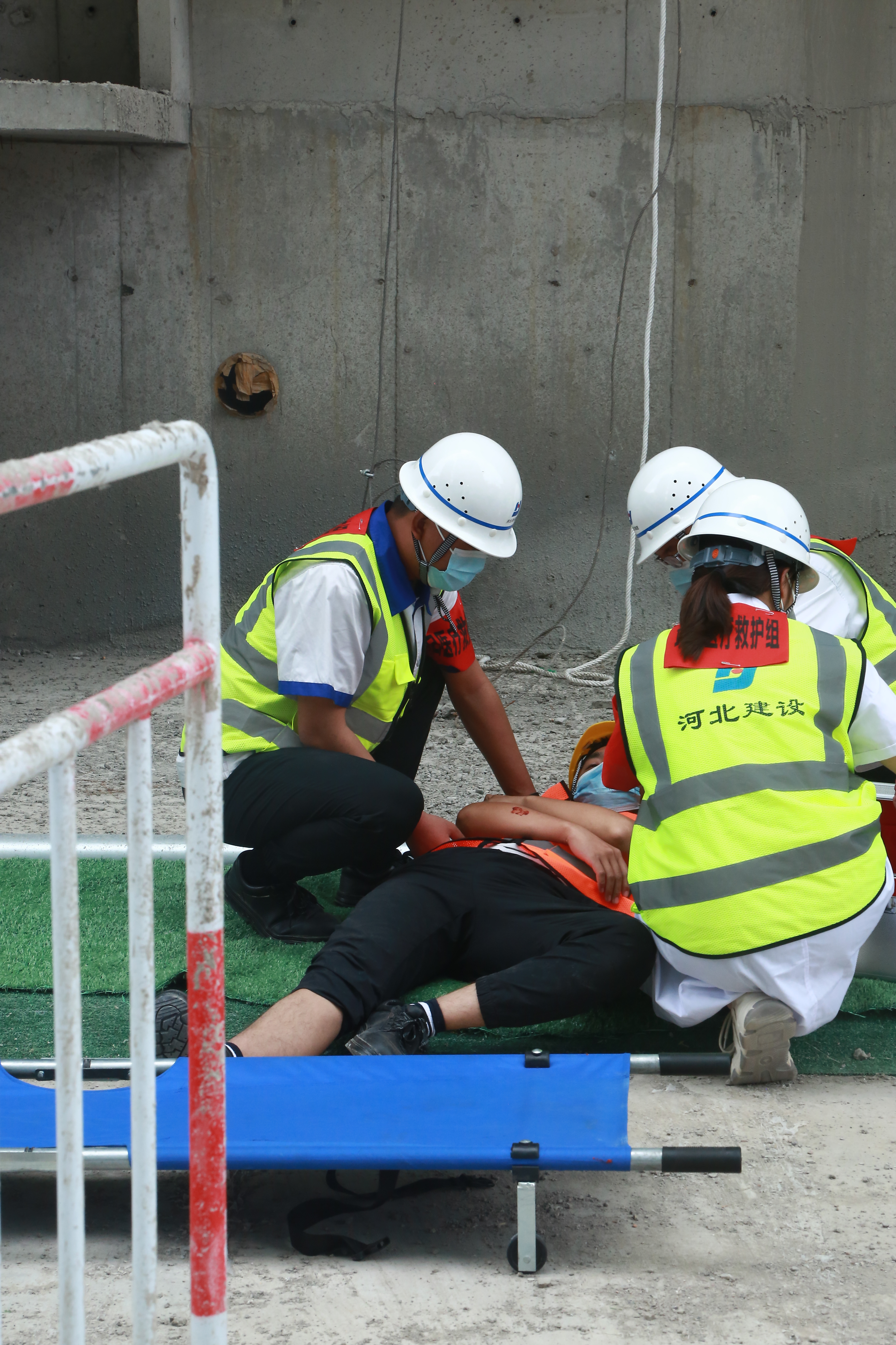 活动现场,全体人员观看了“安全生产月”警示教育片,相关企业代表作了表态发言。活动最后,开展了建筑施工应急救援演练。施工现场模拟高空坠落情景,当发现人员坠落时,立即启动高空坠落应急预案,警戒组立即封闭坠落现场,维护好现场秩序,疏导救援车辆和救护人员;医疗救护组为伤员绑扎做止血处理,同时上报主管部门;救援抢险组提供必需的防护、救护用品及做好其他物资准备工作。整个演练过程紧凑、逼真而又井然有序,各参演人员紧密配合,各尽其责,充分展示了事故处理过程中的紧急抢救能力,达到了预期效果。