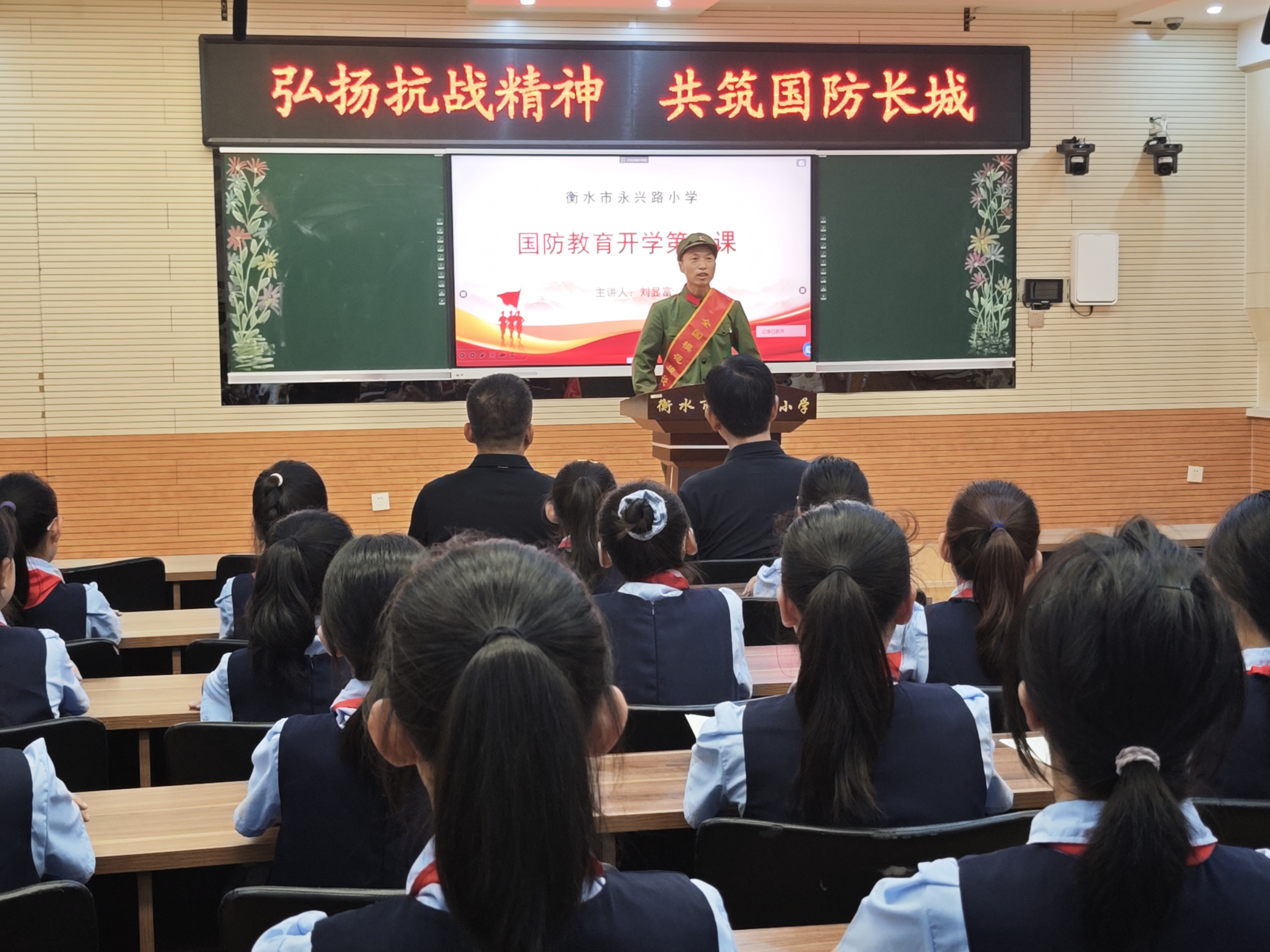 一颗红心永向党,红色基因代代传。今年是建党100周年,为深入贯彻国务院、中央军委关于“双拥共建”指示精神,进一步加强青少年思想道德教育,传承老一辈红色基因,衡水永兴路小学组织开展了“‘寻找红色足迹、传承中华美德’双拥共建”活动。6月23日上午,该校组织部分师生代表走进衡水军分区,参加了庆祝建党100周年“光荣在党50年”纪念章颁发仪式,感受老一辈红色精神。