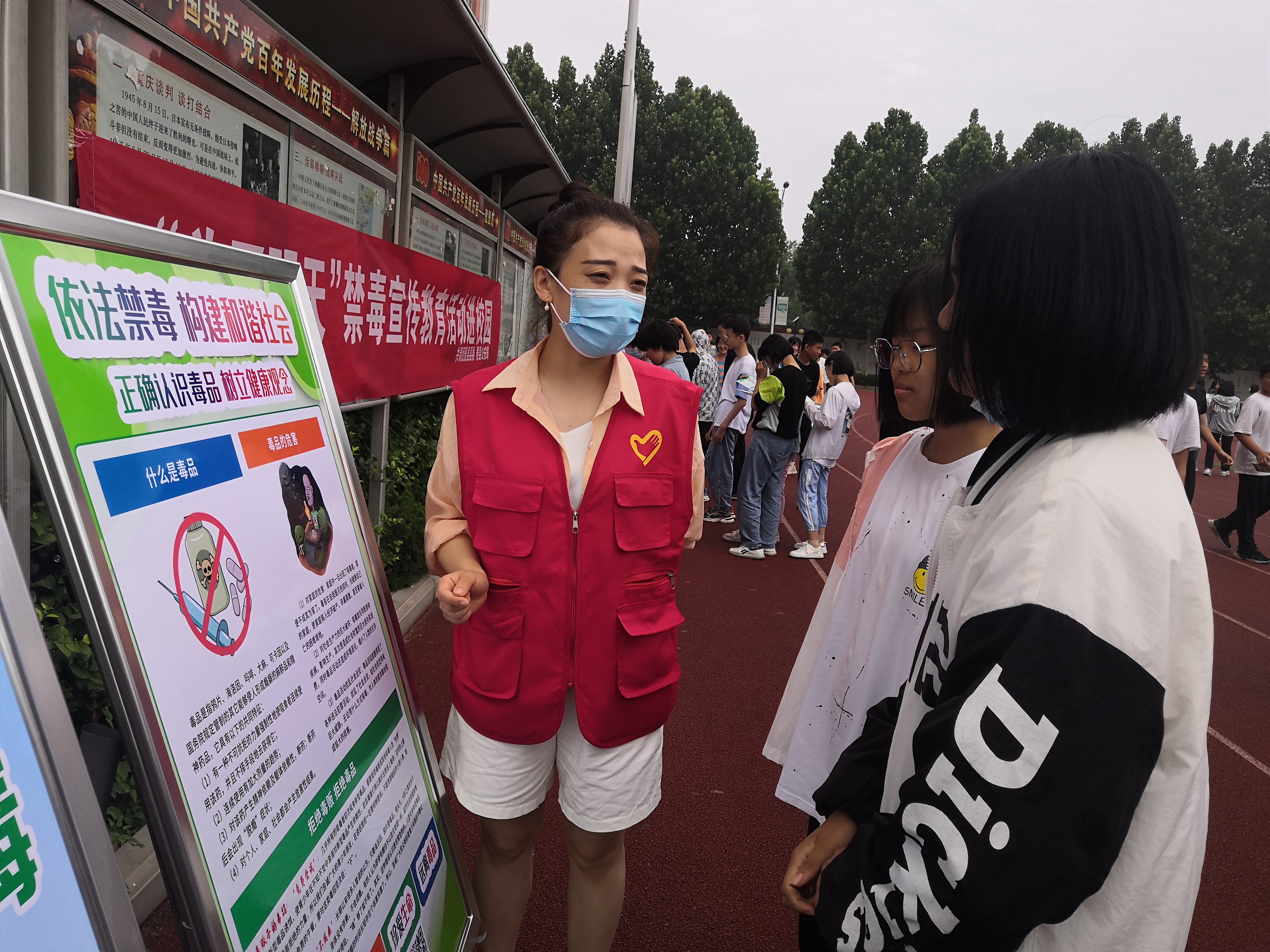 在学校操场上,2000余名学生观看了禁毒宣传展板。共青团景县县委工作人员、景县禁毒中队民警、景县儒乡青年志愿者向师生们发放禁毒宣传手册300余册。他们详细介绍毒品的种类、传播方式和严重危害,教育引导学生们养成良好的生活习惯,树立正确的人生观、价值观,自觉远离毒品诱惑、避免危害。很多学生主动加入到校园拒毒防毒宣传中,纷纷表示要共筑健康纯净的校园环境。
