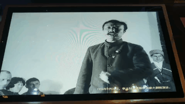 “钊自束发受书,即矢志努力于民族解放之事业,实践其所信,励行其所知,为功为罪,所不暇计……”展览上,还有一份李大钊亲笔书写的《狱中自述》手稿,旁边正在循环播放着一段1924年9月李大钊在莫斯科国家大剧院的演讲,这也是他生前唯一一段视频影像。