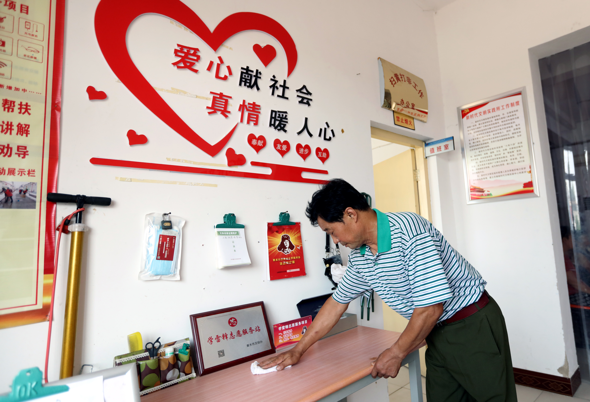 文化站工作人员在打扫卫生。