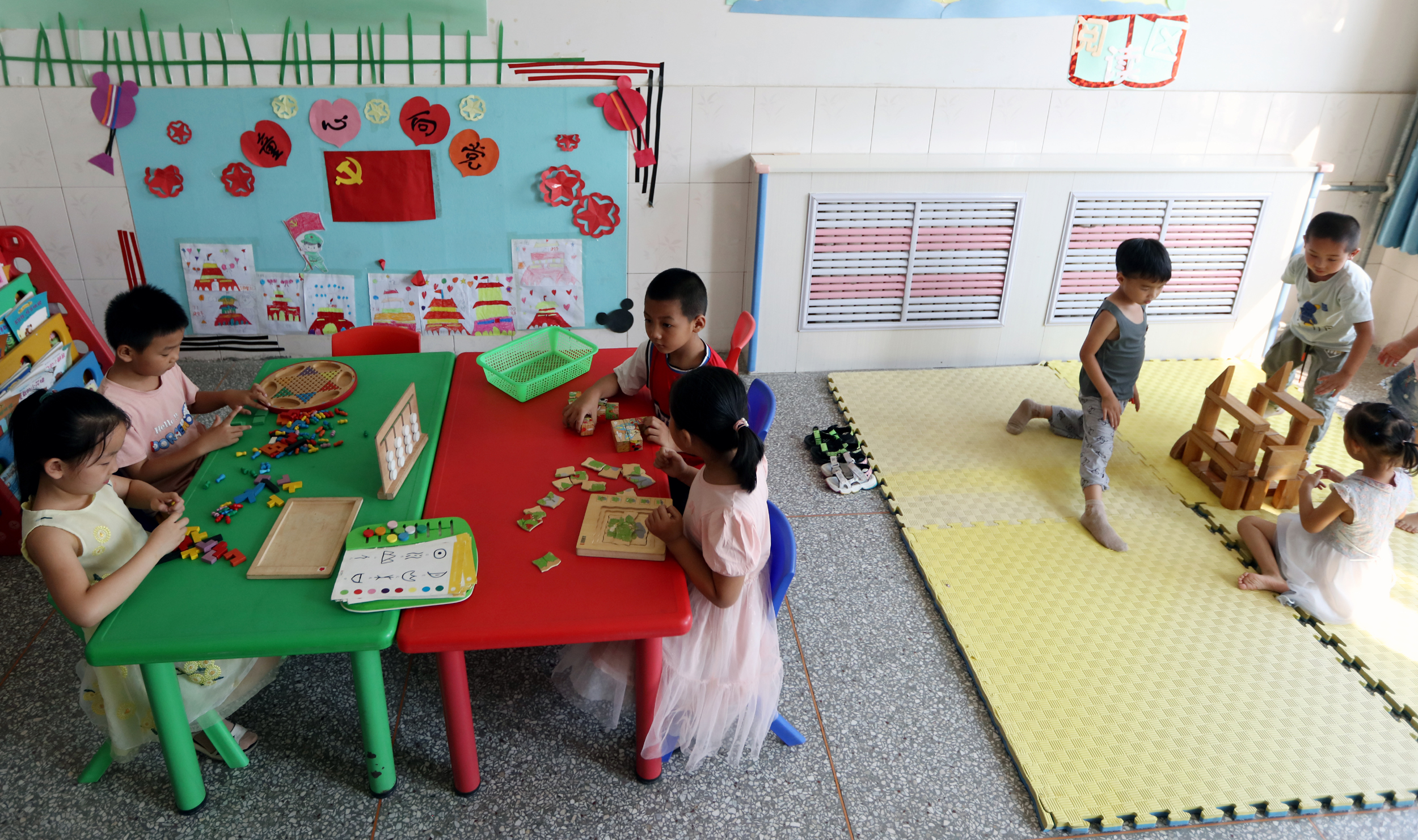 孩子们在“儿童之家”玩耍。
