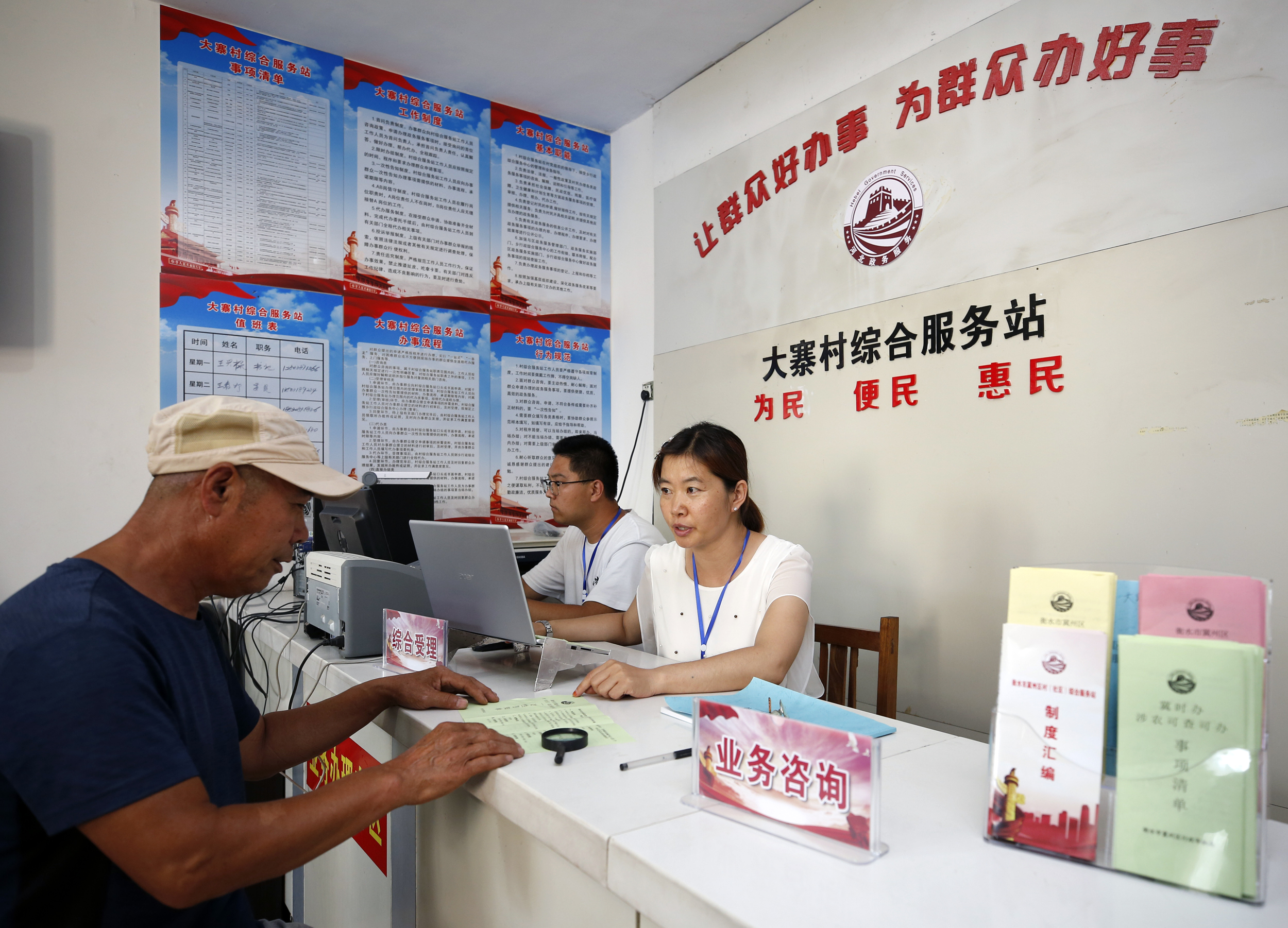 村民在大寨村综合服务站咨询办理业务。