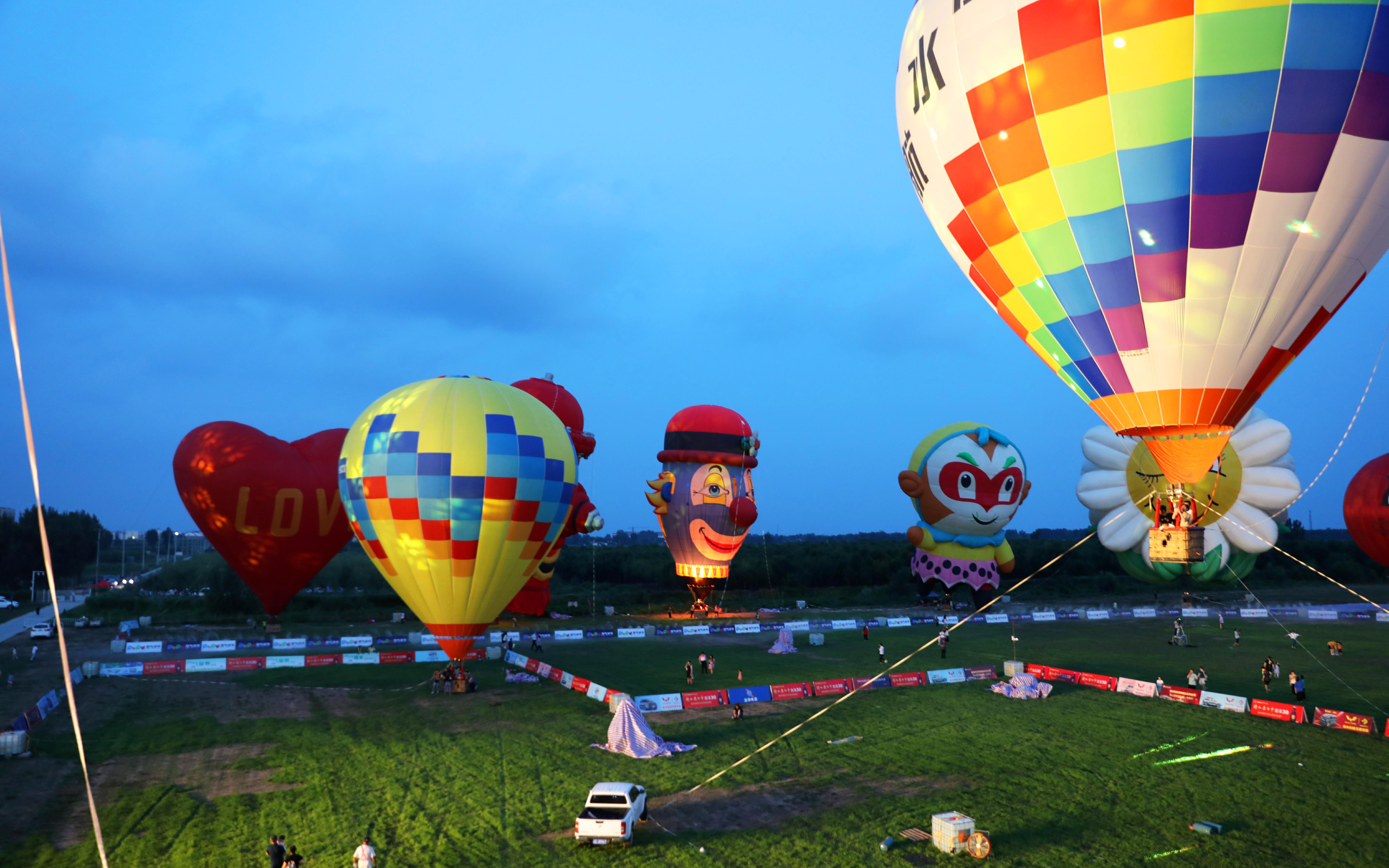 想看热气球,何必要去土耳其,衡水航空小镇的热气球就很美!下午18时许,在游客的满心期待中,衡水航空飞行营地的热气球展示区内,黑猫警长、维京海盗船、孙悟空、小胖鸟等14个卡通主题热气球在夕阳下缓缓升腾起来,“哇!这是乌龟小子!”“这是里约鹦鹉!”“简直太美啦!”看到一个个超萌的卡通热气球站起身来,草坪上的大朋友、小朋友们都禁不住欢呼起来。色彩艳丽的热气球在绿色草坪的映衬下,更加唯美和浪漫,许多游客拿起手机,将眼前的震撼画面拍摄下来。随后,夜幕降临,在现场主持人的指挥下,这些可爱的卡通热气球被工作人员有节奏地“点亮”,成为一场奇幻的热气球灯光秀场。