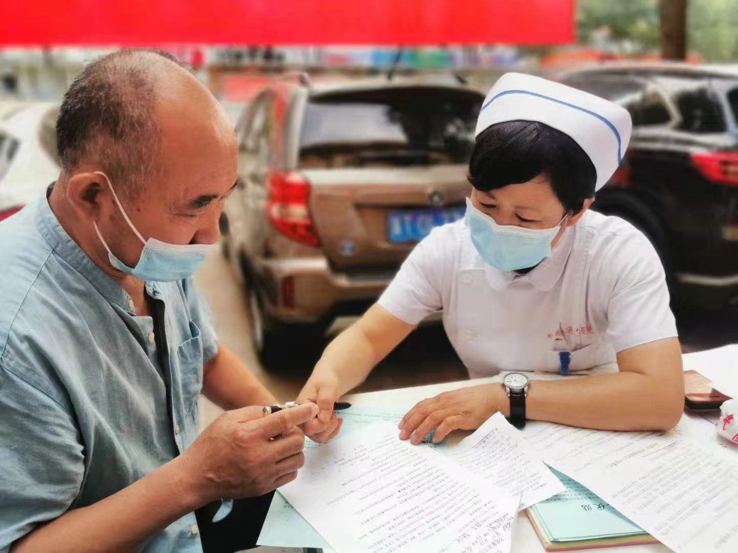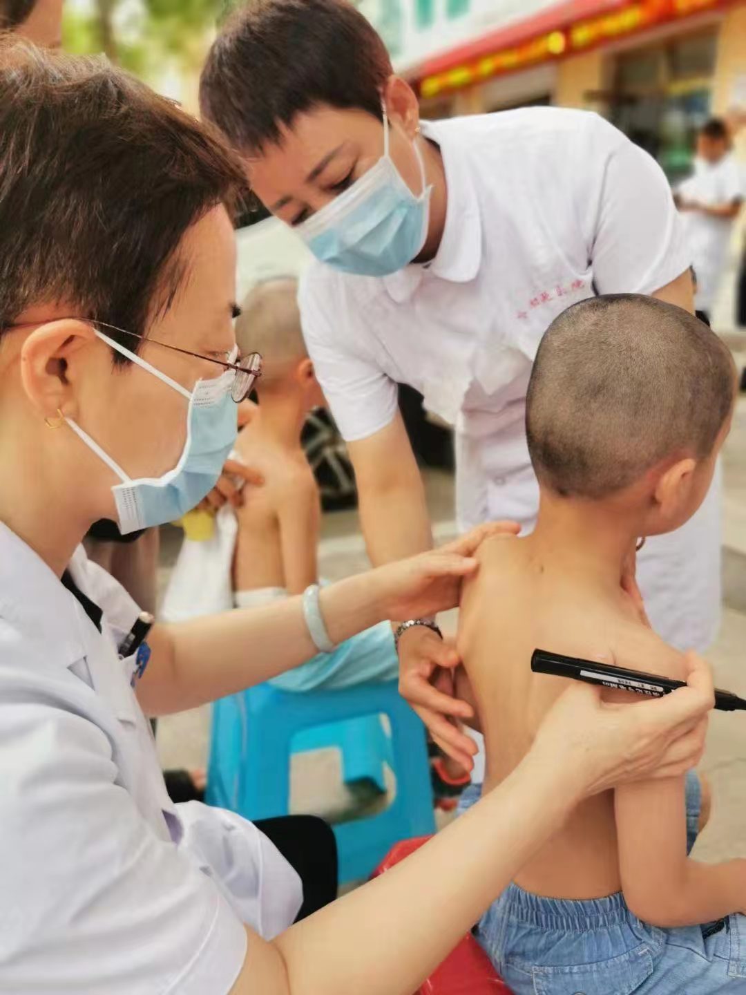 在等待贴敷市民中,有一位来自枣强县的周先生,专程带着老人和孩子前来。他说“以前老人和孩子在这儿都贴过‘三伏贴’,确实有效果,体质增强了,所以年年来。”