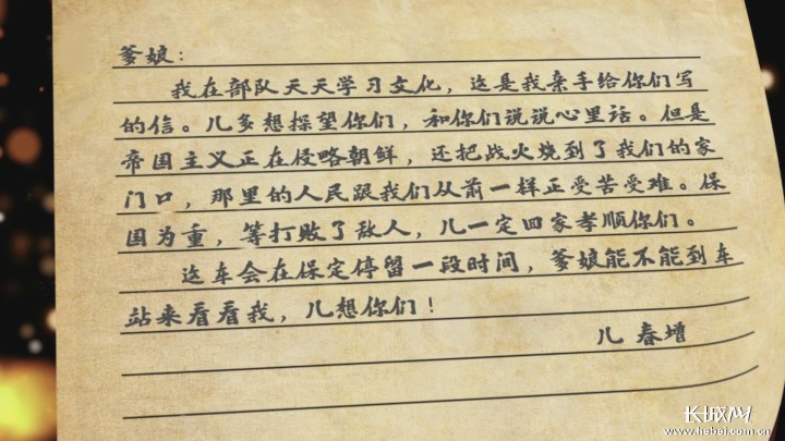 杨春增:是啊,当初入朝作战之前,我们部队乘坐火车正巧经过家乡。我匆忙写下一封家书,从火车上扔给正在地里干活的乡亲,就是想给爹娘报个信。